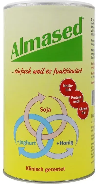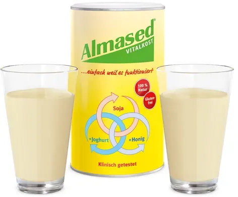Verfügbarkeit: Sofort lieferbar - 38,70 €/kg - Kategorie: Diät - Almased - GTIN:4250529300006 - PZN:03321472 - Almased Vital-Pflanzen-Eiweisskost Mit der Unterstützung von Almased nehmen Sie bei Ihrer Diät nicht nur mehr ab als mit einer Diät ohne Almased, sondern fühlen sich auch gleichzeitig fit und vital. Der Almased-Diät-Effekt: Verbesserter Stoff wechsel, höhere Fettverbrennung. Das hört sich unglaublich an, doch der überlegene Erfolg der Almased-Diät wurde jetzt wissenschaftlich bestätigt. Es optimiert den Stoffwechsel durch das Zusammenwirken seiner natürlichen Grundbausteine. Dadurch entsteht erhöhte Fettverbrennung, ohne die Muskulatur anzugreifen. Das extrem hochwertige und leicht verdauliche Eiweiß in Almased sorgt für ein anhaltendes Sättigungsgefühl: Eine Mahlzeitenportion (Nährwert rund 230 Kilokalorien) macht etwa vier Stunden lang satt. Almased enthält viele wichtige essenzielle Nährstoffe und zellschützende sekundäre Pflanzenstoffe. So halten Sie Ihren Stoffwechsel auch außerhalb der Diät aktiv. Sie werden spüren, dass Sie sich gern bewegen und energiegeladen an Ihre täglichen Aufgaben gehen. Almased wirkt sich positiv auf wichtige Blutwerte aus, vom Cholesterin bis zum Blutzucker, und stärkt das Immunsystem sowie die Vitalität. Almased besteht aus hochwertigem Soja, probiotischem Joghurt und besonders enzymreichem Honig und versorgt uns mit allen essenziellen Aminosäuren aus pflanzlichem und tierischem Eiweiß. Die Enzyme im ... Dieses Angebot ist das günstigste für eine einzelne 500g Packung des laktosefreien Almased Vitalkost Pulvers. ![]() ![]() ALMASED Vitalkost Pulver lactosefrei 500 g