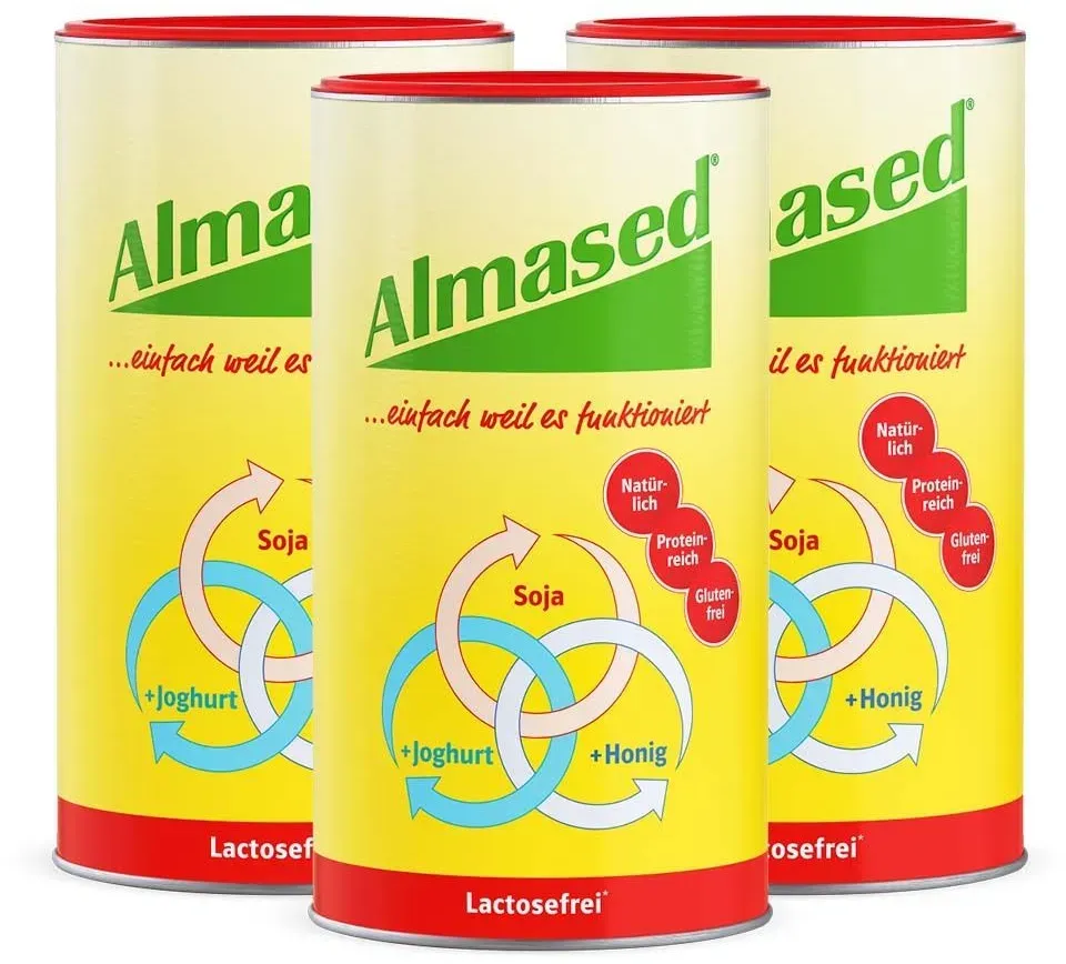 Verfügbarkeit: 1-2 Werktage - 48,37 €/kg - Kategorie: Diät - Almased - GTIN:4150081062865 - Bitte achten Sie Bitte achten Sie auf eine abwechslungsreiche und ausgewogene Ernährung und gesunde Lebensweise Almased Lactosefrei wurde entwickelt, um gezielt den Stoffwechsel zu unterstützen und ein gesundes Gewichtsmanagement langfristig zu fördern. Als ausgewogene Mahlzeit im hektischen Büro-Alltag oder als proteinreicher Energielieferant nach dem Training ist Almased der ideale Begleiter für jede Lebenslage. Die spezielle Zusammensetzung liefert dem Körper täglich wertvolle Nährstoffe und aktiviert wichtige Stoffwechselprozesse. Mit Almased Lactosefrei erleben Sie die gewohnt hohe Almased-Qualität €“ ganz ohne Laktose. 23 essentielle Vitamine, Mineralstoffe versorgen den Körper mit allem, was er für einen aktiven Lebensstil benötigt. Mit einem niedrigen glykämischen Index von 27 auch für Diabetiker*innen geeignet Die Kombination von Soja und laktosefreiem Magermilch-Joghurt bietet ein vollwertiges Aminosäureprofil zur idealen Unterstützung des Muskelaufbaus und €“erhalts Die positive Wirkung ist durch über 30 unabhängige Studien an renommierten Instituten bestätigt Laktosegehalt 1 g/100 g: Auch bei Laktoseintoleranz optimal einsetzbar, ohne Kompromisse bei Geschmack oder Wirksamkeit Traditionsreiche Rezeptur Seit über 3 n begleitet Almased Menschen auf ihrem Weg zu mehr Wohlbefinden und einer gesunden Gewichtsregulation. Die bewährte Kombination aus ... Dieses Dreierpack des Almased Original Pulvers bietet einen guten Vorrat für die Gewichtsreduktion. ![]() ![]() Almased Original Pulver für den Stoffwechsel ? 3x 500g ? Mahlzeitersatz für die Gewichtsreduktion ? frei von künstlichen Zusätzen ? vegetarisch und glutenfrei ? 30 Portionen