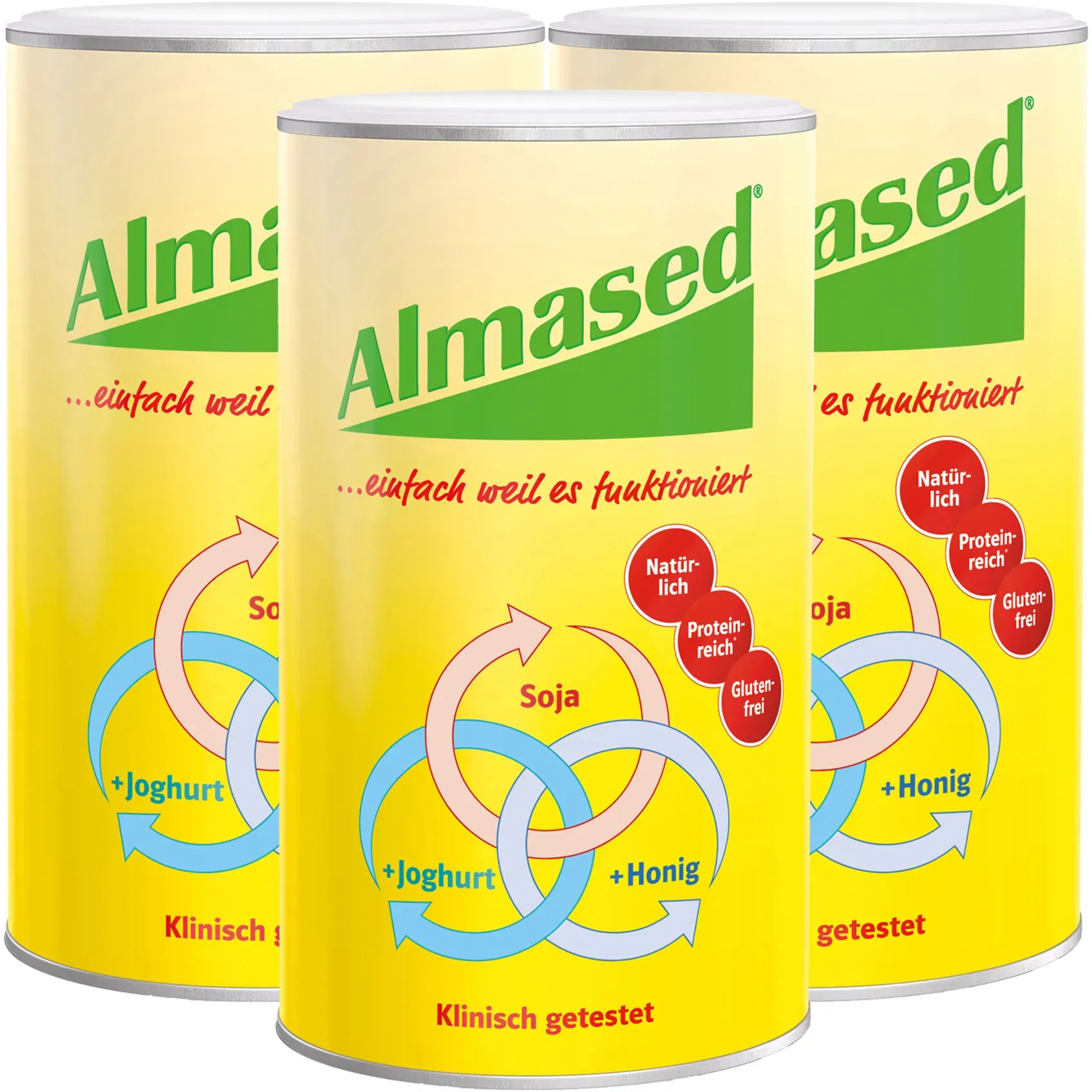 Verfügbarkeit: 1-2 Werktage - 43,84 €/kg - Kategorie: Diät - Almased - GTIN:4150080017118 - Achten Sie auf eine abwechslungsreiche und ausgewogene Ernährung und eine gesunde Lebensweise. Almased Original unterstützt gezielt beim Abnehmen und fördert ein langfristig gesundes Gewichtsmanagement. Und auch unabhängig von einer Gewichtsabnahme ist Almased der ideale Begleiter in allen Lebenssituationen: Ob als flexible und ausgewogene Mahlzeit im hektischen Alltag oder als eiweißreicher Energie-Boost nach dem Sport €“ Ihr Körper profitiert jeden Tag von der einzigartigen Wirkung von Almased. Optimale Nährstoffversorgung mit 23 Vitaminen, Mineralstoffen und Spurenelementen Abnehmen ohne Heißhunger dank niedrigem glykämischen Index Hochwertiges Mehrkomponentenprotein aus Soja und Magermilch-Joghurt unterstützt beim Muskelaufbau und €“erhalt Wissenschaftlich geprüft: über 30 unabhängige Studien bestätigen die positive Wirkung von Almased Vegetarisch, glutenfrei und für Diabetiker*innen geeignet Wissen wie es wirkt Bereits seit über 3 n unterstützt Almased Anwender*innen bei einer erfolgreichen und nachhaltigen Gewichtsreduktion. Die bewährte Formel aus Soja, Magermilch-Joghurt und Bienenhonig kurbelt gezielt den Stoffwechsel und die Fettverbrennung an und liefert alle essenziellen Mikro- und Makronährstoffe. Die Wirkung von Almased wird kontinuierlich und intensiv an unabhängigen Instituten untersucht und mit über 30 Studien zählt es zu einem der am ... Dieses Angebot ist das günstigste für ein Dreierpack des laktosefreien Almased Vitalkost Pulvers. ![]() ![]() 3x Almased Vitalkost Pulver lactosefrei 3x500 g