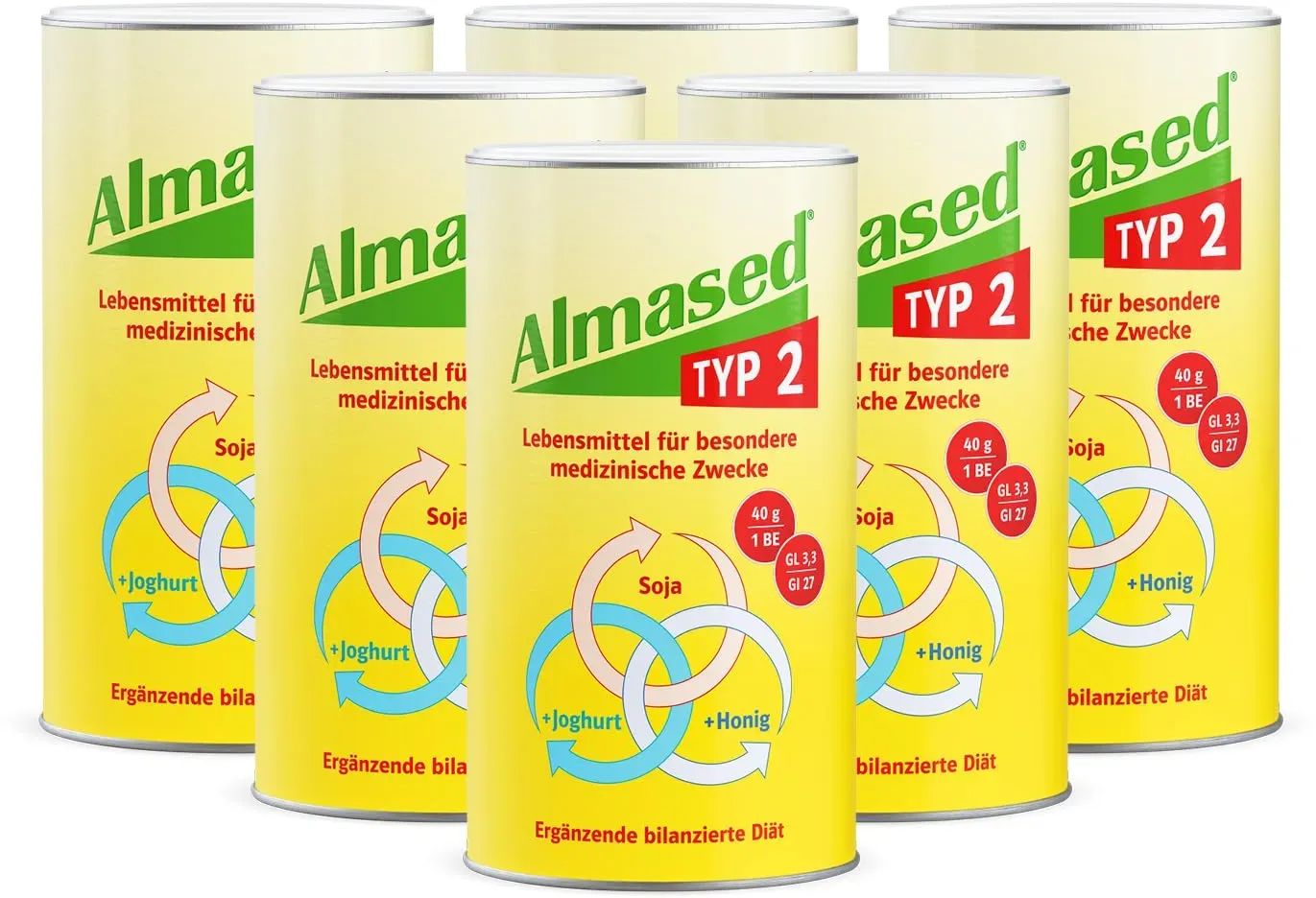 51.93 / kg - Kategorie: Diät - Almased - GTIN:4250529399963 - NATüRLICH: Almased mit Mandel-Vanille Geschmack ist frei von künstlichen Aromen, Süßungsmitteln, sowie Füll- und Konservierungsstoffen. WERTVOLLE AMINOSäUREN: Almased mit Mandel-Vanille Geschmack enthält wertvolle essenzielle und verzweigtkettige Aminosäuren, sodass die Muskeln ideal versorgt werden. ANTI-STRESS-FORMEL: Die in Almased mit Mandel-Vanille Geschmack enthaltenen Nährstoffe und Aminosäuren unterstützen das Nervensystem und sorgen für einen Anti-Aging-Effekt. VIELSEITIGE ANWENDUNG: Sei es im stressigen Alltag, auf Reisen oder nach dem Sport Almased mit Mandel-Vanille Geschmack lässt sich flexibel einsetzen. WISSENSCHAFT: Almased wurde bereits in über 30 wissenschaftlichen Studien umfassend erforscht und getestet ein Produkt mit belegter Wirksamkeit. - 77,89 Euro bei Amazon Marketplace Health & Personal Care - gefunden von billiger.de Dieses Angebot ist empfehlenswert für Diabetiker, die eine langfristige Lösung suchen, da es ein Sechserpack des Almased Typ 2 Pulvers zu einem attraktiven Preis bietet. ![]() ![]() Almased Typ 2 Pulver zur Senkung des Blutzuckerspiegels und HbA1c-Wertes 6x500g 60 Portionen - ohne künstliche Zusätze vegetarisch und glutenfrei