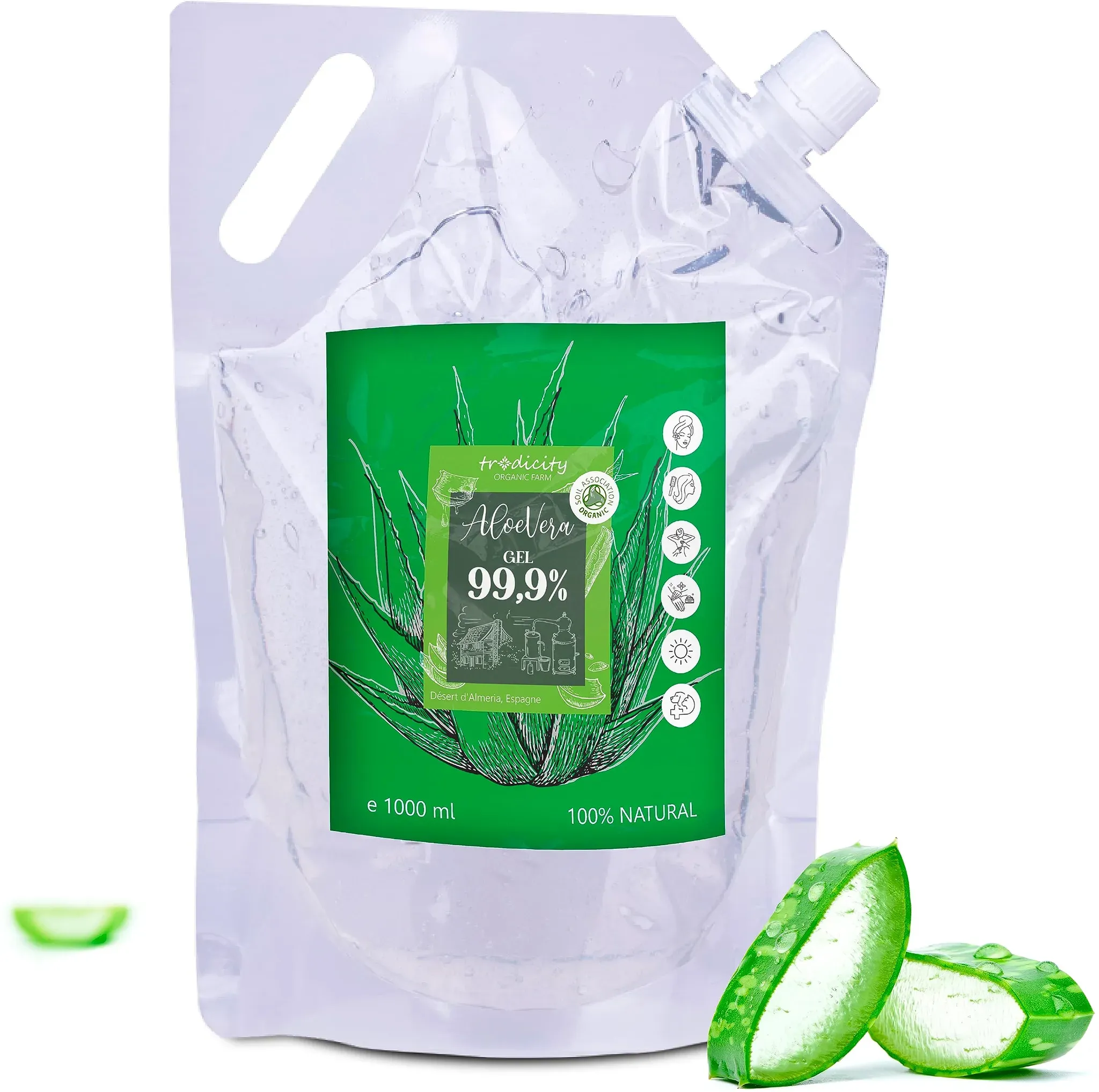 Zustand: Neu - 20,27 € / l - After Sun After Sun-Pflege - B.O.T cosmetic & wellness Made in France - B07D3ZFMCR - EAN: 3701078146115 - 🃠Erleben Sie die reinen, heilenden Eigenschaften von Aloe Vera mit unserem Bio Aloe Vera Gel von B.O.T cosmetic & wellness. Ideal für alle, die eine natürliche und sanfte Pflege für ihre Haut und Haare suchen. Sicher und effektiv auch für Hunde, lindert Hautirritationen und fördert die Heilung von Hautläsionen 🌠Ethisch & Nachhaltig: Unser Aloe Vera Gel ist zertifiziert biologisch, tierversuchsfrei und völlig frei von Zusätzen, Farb- oder Duftstoffen. Es entspricht ethischen und nachhaltigen Hautpflegestandards. Einfach eine kleine Menge des Gels auf die gewünschte Stelle auftragen und sanft einmassieren, bis es vollständig eingezogen ist. Kann täglich angewendet werden 💧 Unser Aloe Vera Gel ist eine erfrischende Feuchtigkeitspflege, ideal für trockene und strapazierte Haut. Es spendet Feuchtigkeit und fördert die Hautregeneration. Das Gel ist leicht und nicht fettend, zieht schnell ein und hinterlässt keine Rückstände 🌞 Lindert Sonnenbrand und Hautirritationen: Unser Aloe Vera Gel ist perfekt für After-Sun-Pflege, lindert Sonnenbrand, Rasurbrand, Hautirritationen und Insektenstiche. Erleben Sie die Essenz der natürlichen und ethischen Hautpflege mit unserem Premium Aftersun Aloe Vera Gel 🌿 Naturkosmetik: Unser Aloe Vera Gel enthält die natürlichen, hautfreundlichen Eigenschaften der Aloe Vera Pflanze. Vielseitig einsetzbar, ... Das tradicity ORGANIC FARM Aloe Vera Gel ist eine gute Wahl für die äußere Anwendung, da es regenerierend und feuchtigkeitsspendend wirkt. ![]() ![]() tradicity ORGANIC FARM Aloe Vera Gel regenerierend feuchtigkeitsspendend 1000 ml