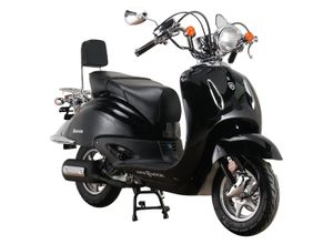 - - Alpha Motors Motorroller Firenze 125 ccm Euro 5 Eleganz von gestern mit der Technik von heute: der Motorroller Retro Firenze im Retro-Look von Alpha Motors ist ein echter Hingucker im modernen Straßenverkehr und bietet puren Fahrspaß. Der Motorroller ist mit einer neuen Motortechnik ausgestattet, welche das Fahrzeug effizienter macht als Roller mit herkömmlichen Vergaser-Motoren. Durch das Zusammenspiel zwischen dem elektronischen Roller-Managementsystem (Ecu) und der neuen elektronischen Kraftstoff-Einspritzung (Efi) verbraucht der Roller weniger Benzin und stößt weniger schädliche Abgase aus. Somit fährt der Motoroller sparsamer, ist umweltfreundlicher und lässt sich auch bei kalten Temperaturen besser starten. Dieses Modell erfüllt die seit 2021 geltende Euro 5 Abgasnorm. Technische Daten Marke: Alpha Motors Farbe: schwarz Gewicht: 98 kg Zulässiges Gesamtgewicht in kg (Belastbarkeit): 238 kg Antrieb: Hinterradantrieb Geschwindigkeit: 85 km/h max. Personenanzahl: 2 Motor: 1 Zylinder, Viertaktmotor, Kraftstoffeinspritzung (Efi) Motorkühlung: Luftkühlung Getriebe: Automatik Motorleistung: 6,3 kW / 8,56 PS Hubraum: 125 ccm Tankvolumen: 5 l Bremsart: Scheibenbremse/Scheibenbremse Bereifung: CST max. Personenanzahl: 2 Abgaswert: Euro 5 Ausstattung: Sitzbankstaufach, Topcase Befestigung, Gepäckträger; Helmhaken, Reflektoren, Autobahnzulassung Warnhinweise: Der angegebene Verbrauch, sowie die Höchstgeschwindigkeit sind vom Gewicht, der Fahrbahnbeschaffenheit und dem ... Dieser Motorroller von Alpha Motors bietet eine umweltfreundliche und effiziente Mobilitätslösung für den Stadtverkehr. ![]() 326657 / Lidl DE Alpha Motors Motorroller »Cappucino«, 45 km/h / 85 km/h, EURO 5