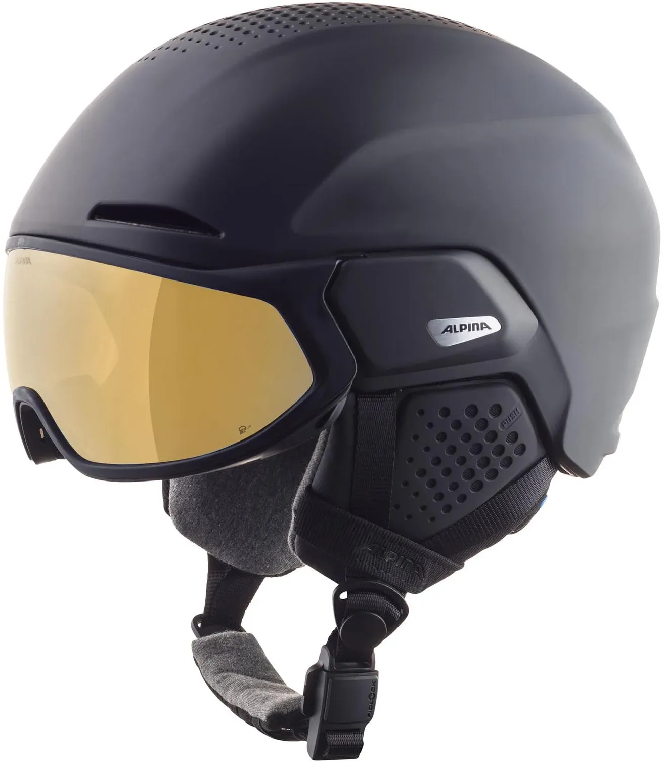 Auf Lager Versand durch AmazonALPINA Alto Q-LITE - sicherer, stoßabsorbierender & individuell anpassbarer Skihelm für Erwachsene, mit kontrastverstärkendem Visier - Black matt (Gold Mirror) - M (55-59 cm)