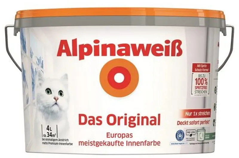 lieferbar-in 4-5 Werktagen bei dirAlpina Wand- und Deckenfarbe Alpinaweiß Das Original 4 Liter weiß