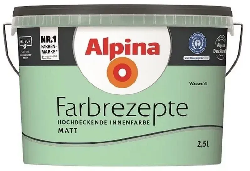 lieferbar-in 4-5 Werktagen bei dirAlpina Wand- und Deckenfarbe Farbrezepte 2,5 Liter Wasserfall Matt grün
