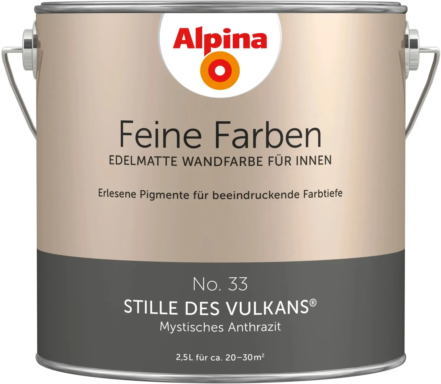 16.00 /l - Kategorie: Farben & Lacke - Alpina - GTIN:4001244758791 - Die Alpina Wand- und Deckenfarbe deckt mit einem Anstrich Neu- und Renovierungsanstriche im Innenbereich. Sie ist beständig, strapazierfähig und hochergiebig. Außerdem ist die Innenfarbe geruchsfreundlich und wasserbasiert. Die Alpina Feine Farben sind zeitlos und klassisch. In harmonischer Kombination mit Möbeln und Accessoires veredeln die Farben jeden Raum auf ihre ganz individuelle Weise. Dispersionsfarbe mit höchster Deckkraft und starker Farbintensität Die Deckenfarbe eignet sich für Putz, Beton, Mauerwerk, Gipskarton und Tapete. Dabei erzeugt die Farbe durch die Deckkraftklasse 1 ein sattes und stark deckendes Farbergebnis. Außerdem ist die Farbe durch die starken Pigmente sehr intensiv und lässt sich leicht verarbeiten. Ausgezeichnet mit dem Blauen Engel Die Wand- und Deckenfarbe basiert auf Wasser, wodurch der Raum nicht so stark nach Farbe riecht. Sie enthält keine Konservierungsmittel und ist auch für Allergiker geeignet. Die Deckenfarbe ist außerdem lösemittelfrei und mit dem Blauen Engel ausgezeichnet. Alpina Feine Farben eignen sich für folgende Innenflächen: glatte Wände und Decken (Mauerwerk, Verputz) festhaftende Raufaser- oder Strukturtapeten geeignete Vliestapetengrundierte Gipskarton- und Deckenplatten Dispersionsaltanstriche - 39,99 Euro bei OBI - gefunden von billiger.de Die Alpina Feine Farben No. 33 "Stille des Vulkans" in Anthrazit edelmatt bietet eine kräftige und moderne Farbgebung. ![]() ![]() Alpina Feine Farben No. 33 Stille des Vulkans Anthrazit edelmatt 2,5 l