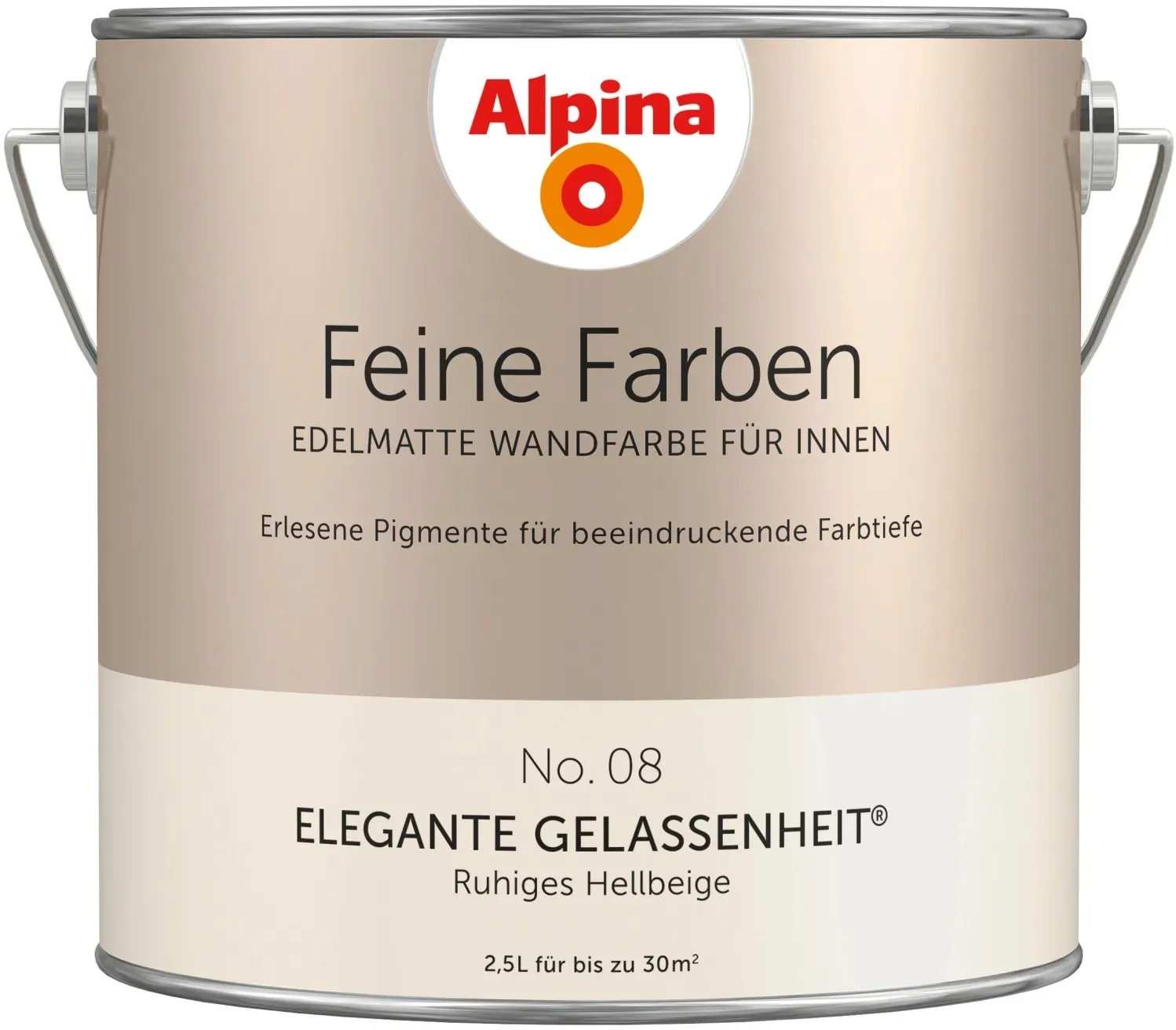 16.00 /l - Kategorie: Farben & Lacke - Alpina - GTIN:4001244758692 - Die Alpina Wand- und Deckenfarbe deckt mit einem Anstrich Neu- und Renovierungsanstriche im Innenbereich. Sie ist beständig, strapazierfähig und hochergiebig. Außerdem ist die Innenfarbe geruchsfreundlich und wasserbasiert. Die Alpina Feine Farben sind zeitlos und klassisch. In harmonischer Kombination mit Möbeln und Accessoires veredeln die Farben jeden Raum auf ihre ganz individuelle Weise. Dispersionsfarbe mit höchster Deckkraft und starker Farbintensität Die Deckenfarbe eignet sich für Putz, Beton, Mauerwerk, Gipskarton und Tapete. Dabei erzeugt die Farbe durch die Deckkraftklasse 1 ein sattes und stark deckendes Farbergebnis. Außerdem ist die Farbe durch die starken Pigmente sehr intensiv und lässt sich leicht verarbeiten. Ausgezeichnet mit dem Blauen Engel Die Wand- und Deckenfarbe basiert auf Wasser, wodurch der Raum nicht so stark nach Farbe riecht. Sie enthält keine Konservierungsmittel und ist auch für Allergiker geeignet. Die Deckenfarbe ist außerdem lösemittelfrei und mit dem Blauen Engel ausgezeichnet. Alpina Feine Farben eignen sich für folgende Innenflächen: glatte Wände und Decken (Mauerwerk, Verputz) festhaftende Raufaser- oder Strukturtapeten geeignete Vliestapetengrundierte Gipskarton- und Deckenplatten Dispersionsaltanstriche - 39,99 Euro bei OBI - gefunden von billiger.de Die Alpina Feine Farben No. 8 "Elegante Gelassenheit" in Hellbeige edelmatt bietet eine hochwertige und stilvolle Farboption für anspruchsvolle Gestaltungen. ![]() ![]() Alpina Feine Farben No. 8 Elegante Gelassenheit Hellbeige edelmatt 2,5 l