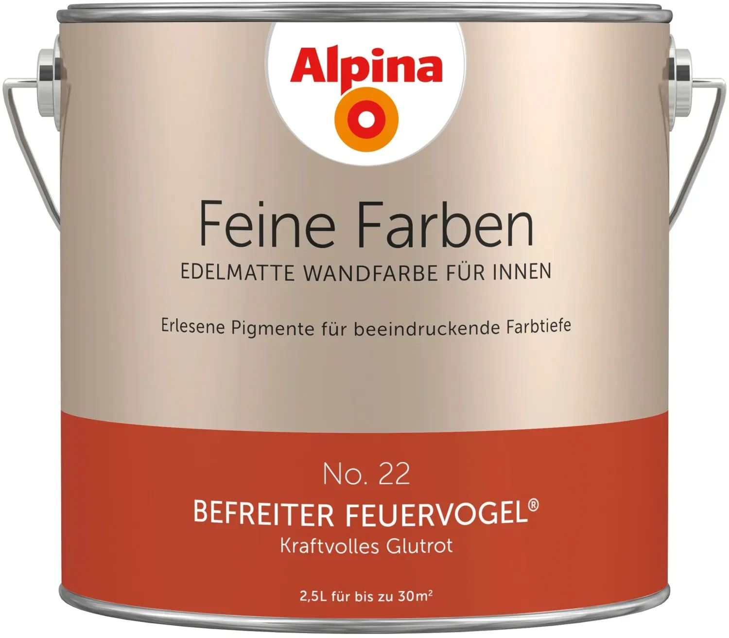 Zustand: Neu - 16,00 € / l - Küchen- & Badezimmerfarben - Alpina - 2004843 - EAN: 4034139140029 - MEHR ALS NUR FARBE: Die Wandfarbe kombiniert moderne Optik mit funktionalem Nutzen für Bad & Küche. Sie trocknet gleichmäßig matt, ist tropfgehemmt und sorgt für ein harmonisches Gesamtbild LEICHT ZU VERARBEITEN: Die streichfertige Innenfarbe lässt sich gleichmäßig mit Rolle oder Pinsel auftragen. Tropfgehemmt und sauber in der Anwendung - perfekt für schnelles, stressfreies Streichen STRAPAZIERFÄHIG: Die matte Wandfarbe ist abriebfest und für den Einsatz in stark beanspruchten Bereichen geeignet. Für dauerhaft schöne Wände bei regelmäßiger Feuchtigkeitsbelastung FÜR FEUCHTRÄUME GEEIGNET: Die Wandfarbe ist ideal für Wände und Decken in Bad, Küche, WC oder Hauswirtschaftsraum. Haftet zuverlässig auf Putz, Beton, Raufaser und vorhandenen Altanstrichen DIE FARBEXPERTEN: Innenfarben, bunte Wandgestaltung, Lacke, Öle und kreatives Zubehör. Mit Alpina machst du aus jedem Raum dein Zuhause - drinnen wie draußen. Einfach streichen, nachhaltig verschönern, lange genießen - Verkäufer: Alpina-Farben im amazon.de Marketplace Die Alpina Feine Farben No. 22 "Befreiter Feuervogel" in Rot edelmatt ist eine mutige Farbwahl für besondere Akzente. ![]() ![]() Alpina Feine Farben No. 22 Befreiter Feuervogel Rot edelmatt 2,5 l