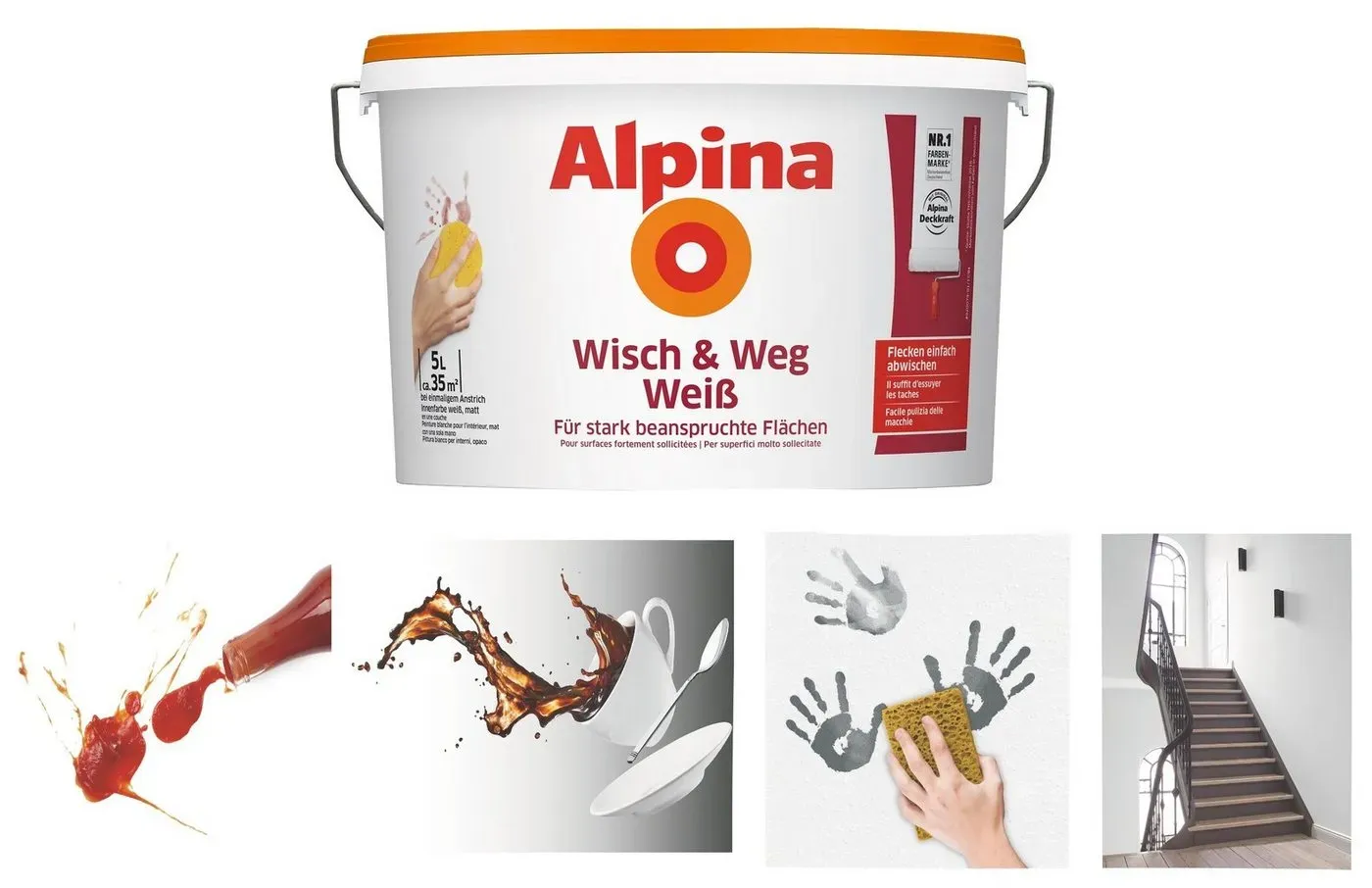 Verfügbarkeit: lieferbar-in 4-5 Werktagen bei dir - 12.98€/1l - Kategorie: Farben & Lacke - Alpina - GTIN:4001244741854 - Glanzgrad , Matt, Farbe , weiß, Inhalt in Liter , 5.00 l, Gewicht , 8 kg, - 64,90 Euro bei OTTO - gefunden von billiger.de Alpina Seidenlatex bietet eine seidenglänzende Oberfläche und ist besonders strapazierfähig, was sie für stark frequentierte Räume geeignet macht. ![]() ![]() Alpina Wandfarbe Alpina Seidenlatex Alpinaweiß 10 L seidenglänzend weiß