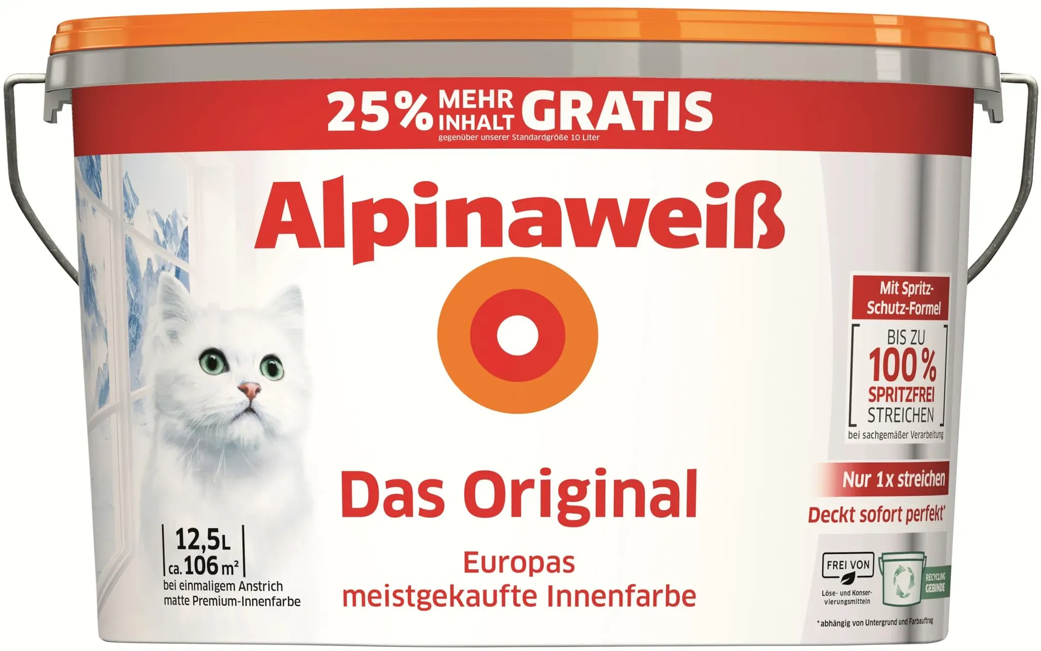 Dieses Angebot ist ein Beispiel für Angebote, die kürzlich auf dem eBay-Marktplatz in der Kategorie 180979 verfügbar waren. Bitte aktualisieren Sie die Suchergebnisse um aktuelle Angebote zu erhalten. Dieses Paket bietet ein gutes Preis-Leistungs-Verhältnis für Alpinaweiß, da es 10 Liter plus 2,5 Liter gratis enthält und somit ideal für größere Flächen ist. ![]() ![]() Alpinaweiß Das Original €“ optimal deckende und ergiebige weiße Wandfarbe €“ mit Spritz-Schutz-Formel €“ 10 Liter + 2,5 Liter gratis