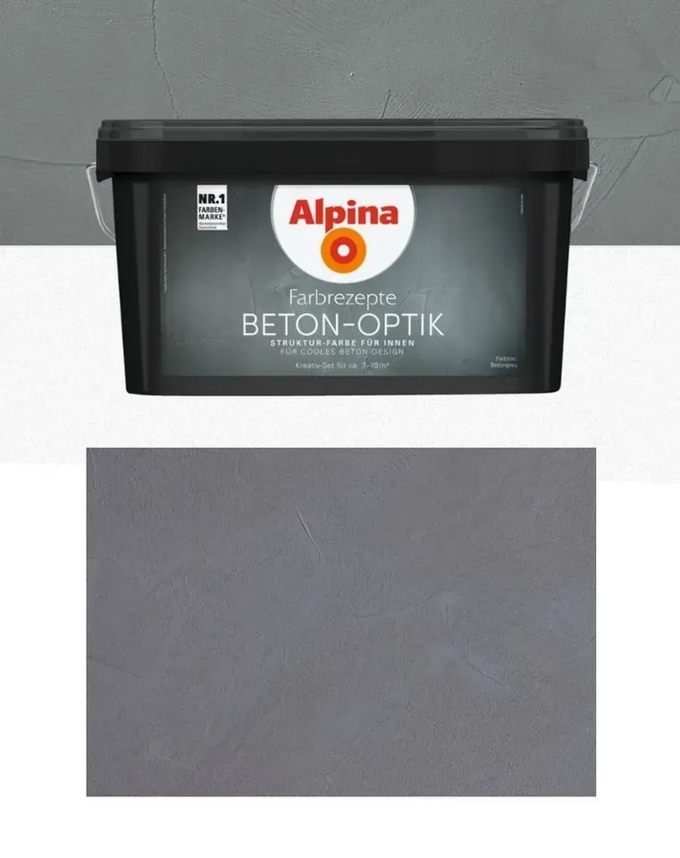 6 Händlerangebote bei billiger.de - Kategorie: Farben & Lacke - Alpina - Farbe , Betongrau, Farbhinweise , Bitte beachten Sie, dass die Farben auf Ihrem Monitor von den Originalfarbtönen abweichen können, Eigenschaften , wasserverdünnbar, geruchsarm , reinigungsfähig mit Wasser und normalen Haushaltsreinigern, Anwendungsbereich , Innenbereich , Wand, Geeignete Materialien , glatte Wände, glatte, festhaftende Tapeten, Dispersionsaltanstriche, alternativ: geeignete Vliestapeten, Gipskartonplatten, Art Verarbeitung , Alpina ROLLER zum Auftragen und die Alpina Effekt-Kelle zum Strukturieren., Untergrundbeschaffenheit , Der geeignete Untergrund muss trocken, fest und tragfähig sein., Hinweis Maßangaben , Alle Angaben sind ca.-Maße, Verarbeitungshinweis , 1. BETON-OPTIK hellgrau Basis mit dem an-gefeuchteten Alpina ROLLER aufrollen ... 2. ... und mit der Alpina EFFEKT-KELLE in kurzen Bewegungen kreuz und quer strukturieren. Die Alpina EFFEKT-KELLE an der Kante ansetzen. Die sich an der Kelle ansammelnde Farbe regelmäßig am Eimer abstreichen. 12 Stunden trocknen lassen. 3. Danach Farbrezepte BETON-OPTIK hellgrau Finish mit dem angefeuchteten Alpina ROLLER aufrollen... 4. ...und ebenfalls die Alpina EFFEKT-KELLE an der Kante ansetzen und unter Druck kreuz und quer strukturieren. Dabei bewusst Material abtragen und regelmäßig am Eimer abstreifen., - GTIN:4001244729906 Wer einen besonderen Akzent setzen möchte, findet in dieser Alpina Wandfarbe mit Metall Effekt in Silber eine kreative Option. ![]() ![]() Alpina Wandfarbe Alpina Wandfarbe Metall Effekt silber 1 L silberfarben