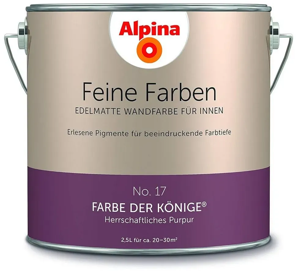 Verfügbarkeit: lieferbar-in 2-3 Werktagen bei dir - 14.80€/1l - Kategorie: Farben & Lacke - Alpina - GTIN:4001244758746 - Alpina Wandfarbe Alpina feine Farben 2,5 Ltr. No. 17 Farbe der Könige - Herrschaftlich - 36,99 Euro bei OTTO - gefunden von billiger.de Diese spezielle Bad & Küche Wandfarbe in Salbei ist ideal für Feuchträume, da sie schimmelhemmend wirkt und eine angenehme Farbe bietet. ![]() ![]() Alpina Bad & Küche Wandfarbe Salbei matt 2,5 l