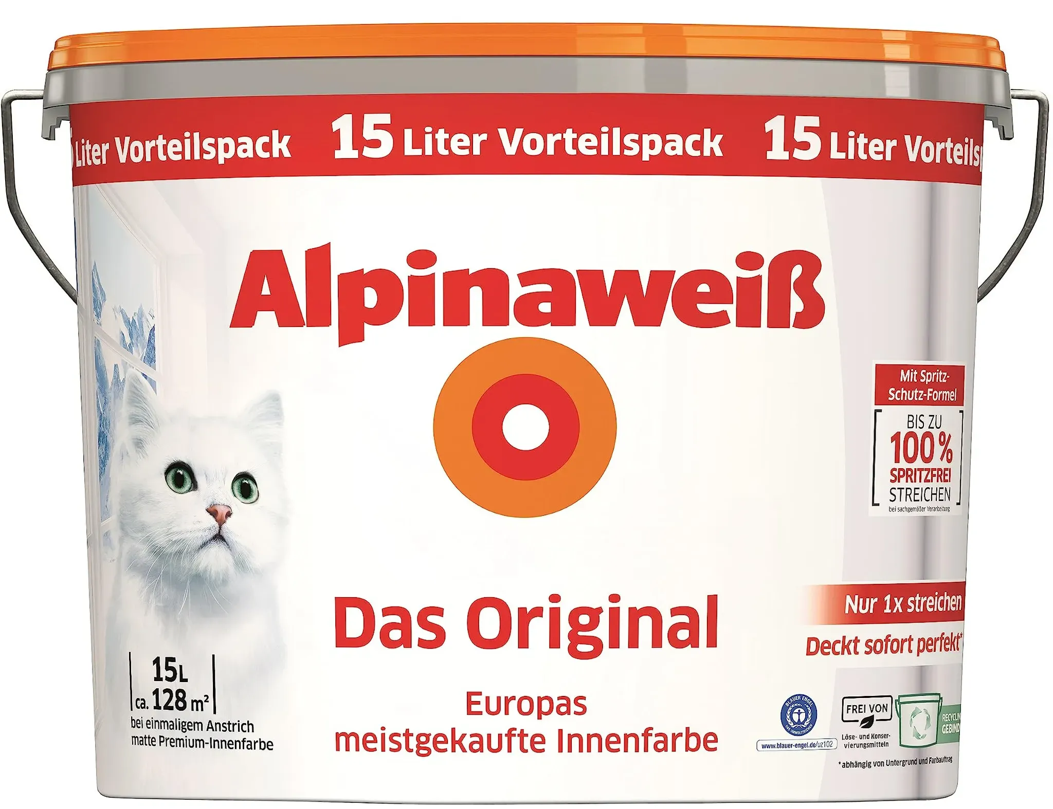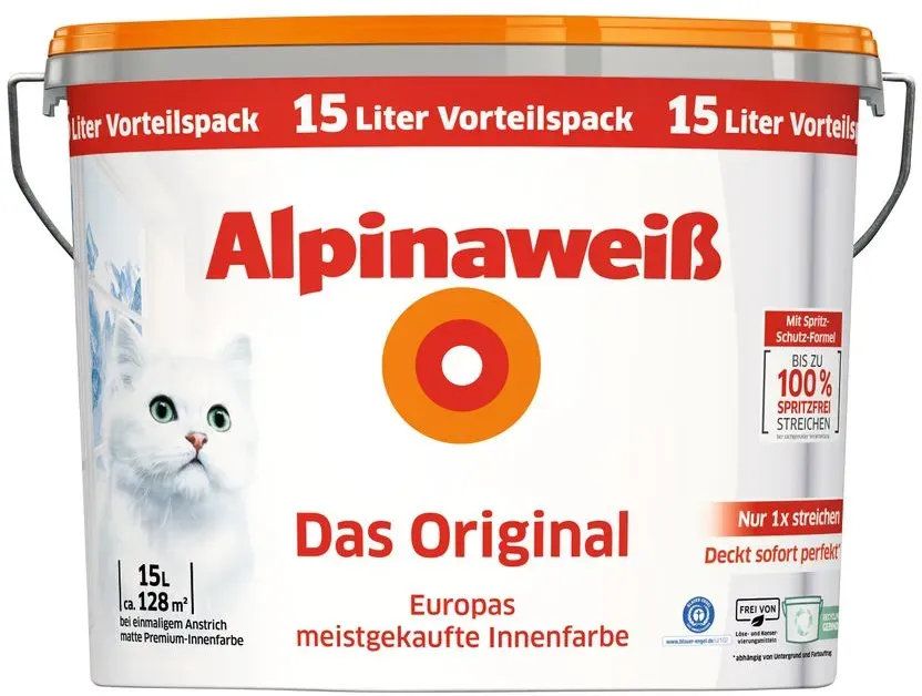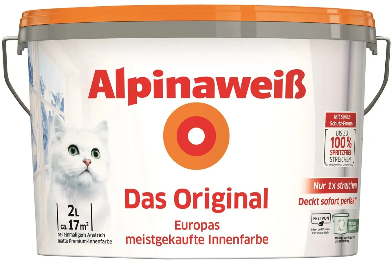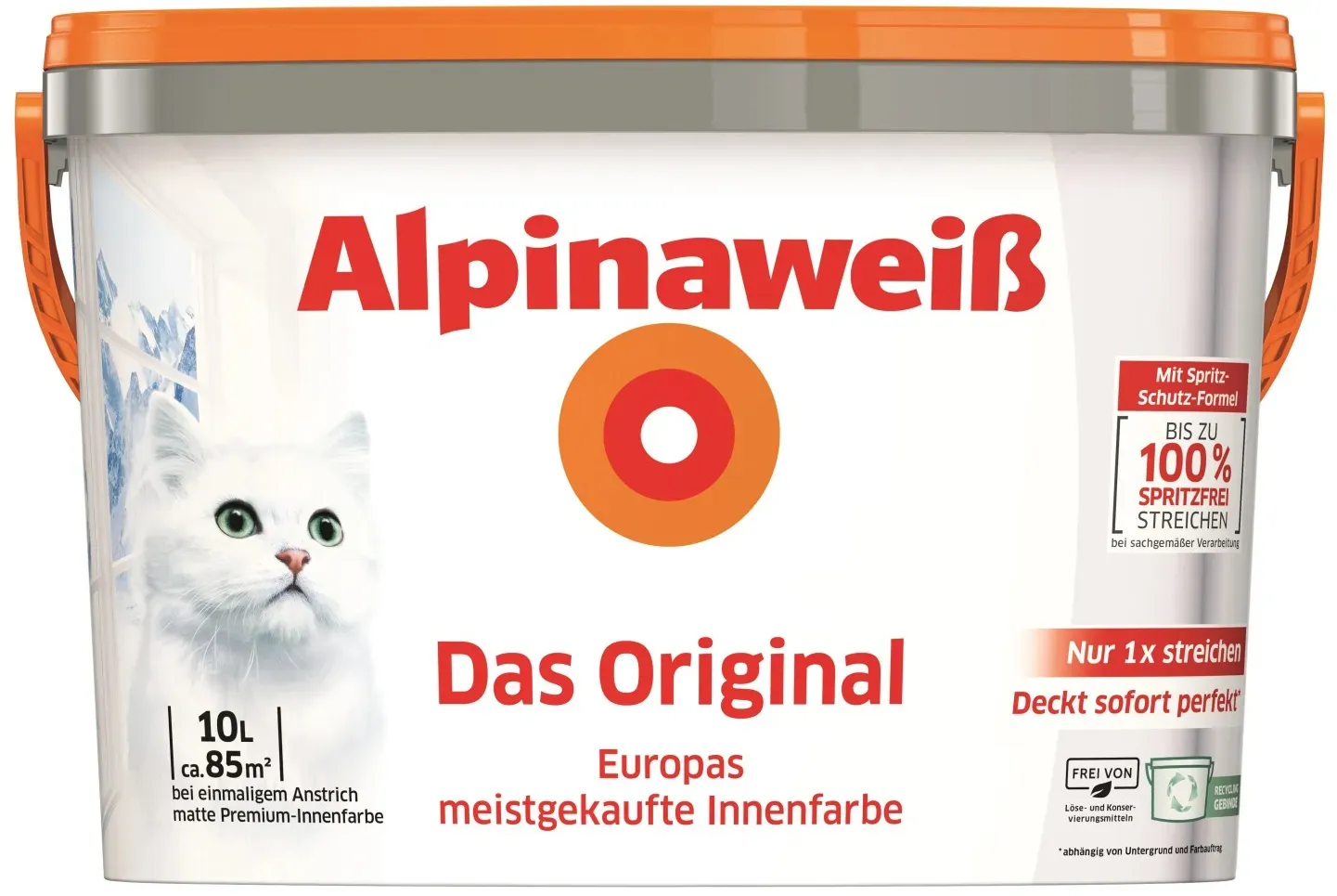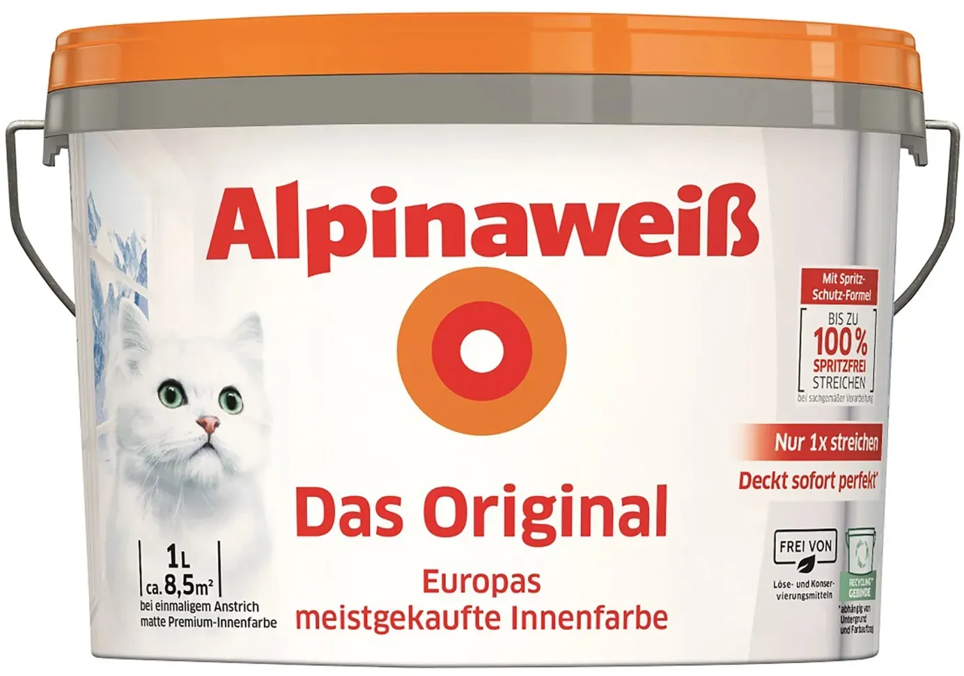13 Händlerangebote bei billiger.de - Kategorie: Farben & Lacke - Alpina - Seit über 10 n bringt Alpinaweiß strahlendes Weiß an die Wände ganzer Generationen. Sie ist die Innenfarbe, der die meisten Menschen in Europa vertrauen. Alpinaweiß, Europas meistgekaufte Innenfarbe, gibt es ab sofort im neuen ressourcenschonenden Recycling-Gebinde. Dieses Gebinde besteht zu mindestens 70% aus recyceltem Kunststoff-Rücklauf privater Haushalte (ohne Deckel) und ist zu 100% recyclebar. Damit leistet Alpina einen wertvollen Beitrag für mehr Nachhaltigkeit bei weißen Innenfarben. Holen Sie sich jetzt das spritzfreie Alpinaweiß Das Original in Ihr Zuhause. Das Spitzenprodukt aus dem Hause Alpina deckt sofort perfekt und ermöglicht bei sachgemäßer Verarbeitung bis zu 100% spritzfreies Streichen. Alpinaweiß ist noch ergiebiger und frei von Löse- und Konservierungsmitteln und kann mit handelsüblichen Rollern ganz leicht verarbeitet werden. Es empfiehlt sich jedoch die Verwendung des Alpina Spritz-Schutz-Spezialrollers, weil dadurch das Risiko von Spritzern und Tropfen bei der Verarbeitung minimiert werden kann. - GTIN:4001244796472 Ein Standardangebot für 4 Liter, ideal für ein mittelgroßes Zimmer. ![]() ![]() Alpinaweiß Das Original €“ optimal deckende und ergiebige weiße Wandfarbe €“ mit Spritz-Schutz-Formel €“ 4 Liter