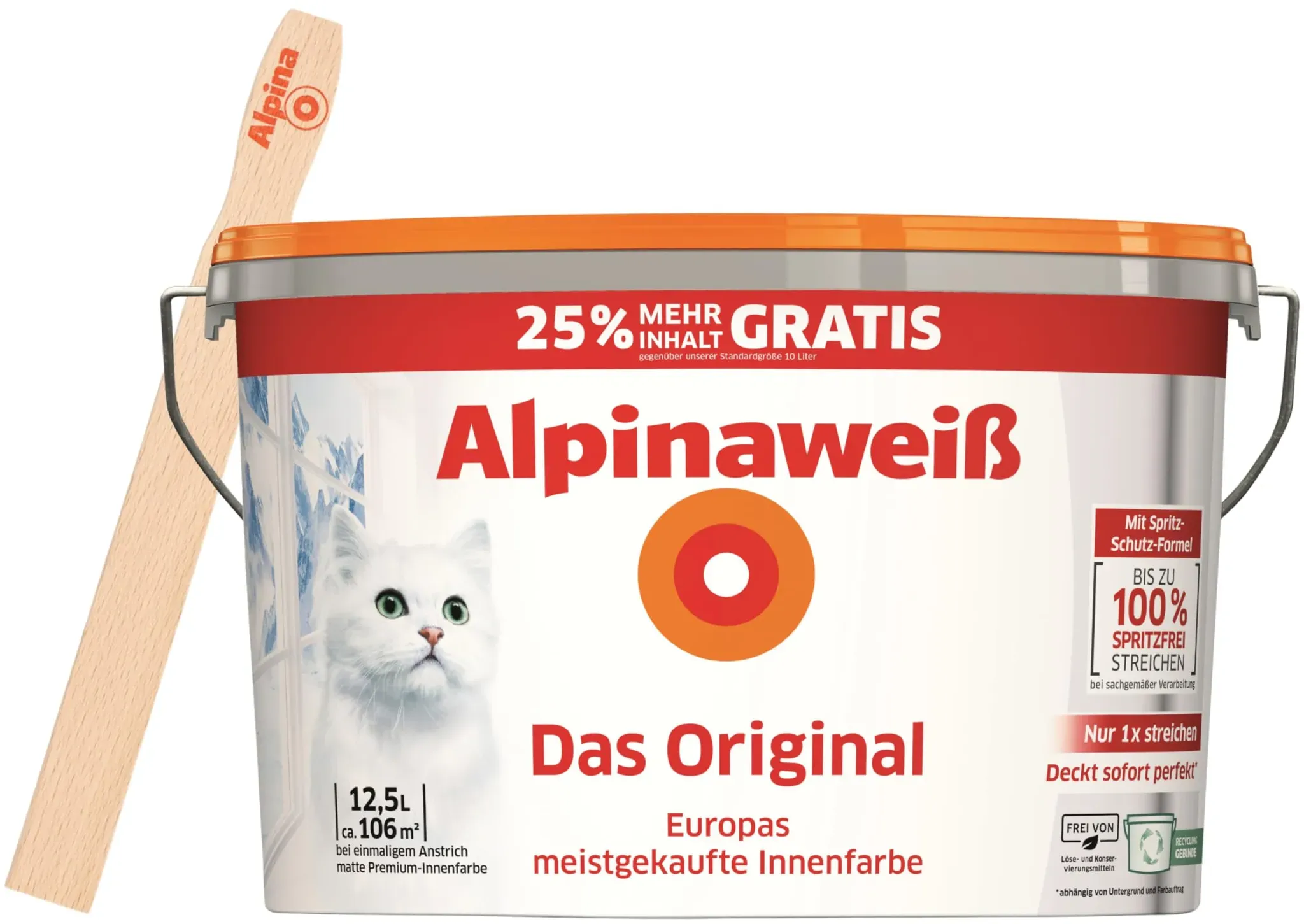Verfügbarkeit: Auf Lager - Kategorie: Farben & Lacke - Alpina - GTIN:4001244798193 - Alpina XXL Alpina Weiß 12 Liter Wandfarbe Das Original 20 % GRATIS - 54,95 Euro bei Amazon Marketplace Home Improvement - gefunden von billiger.de Dieses Angebot beinhaltet 12,5 Liter Farbe und ein gratis Rührholz, was es zu einer praktischen Wahl macht. ![]() ![]() Alpinaweiß Das Original €“ optimal deckende und ergiebige weiße Wandfarbe €“ mit Spritz-Schutz-Formel €“ 12,5 Liter inkl. gratis Rührholz