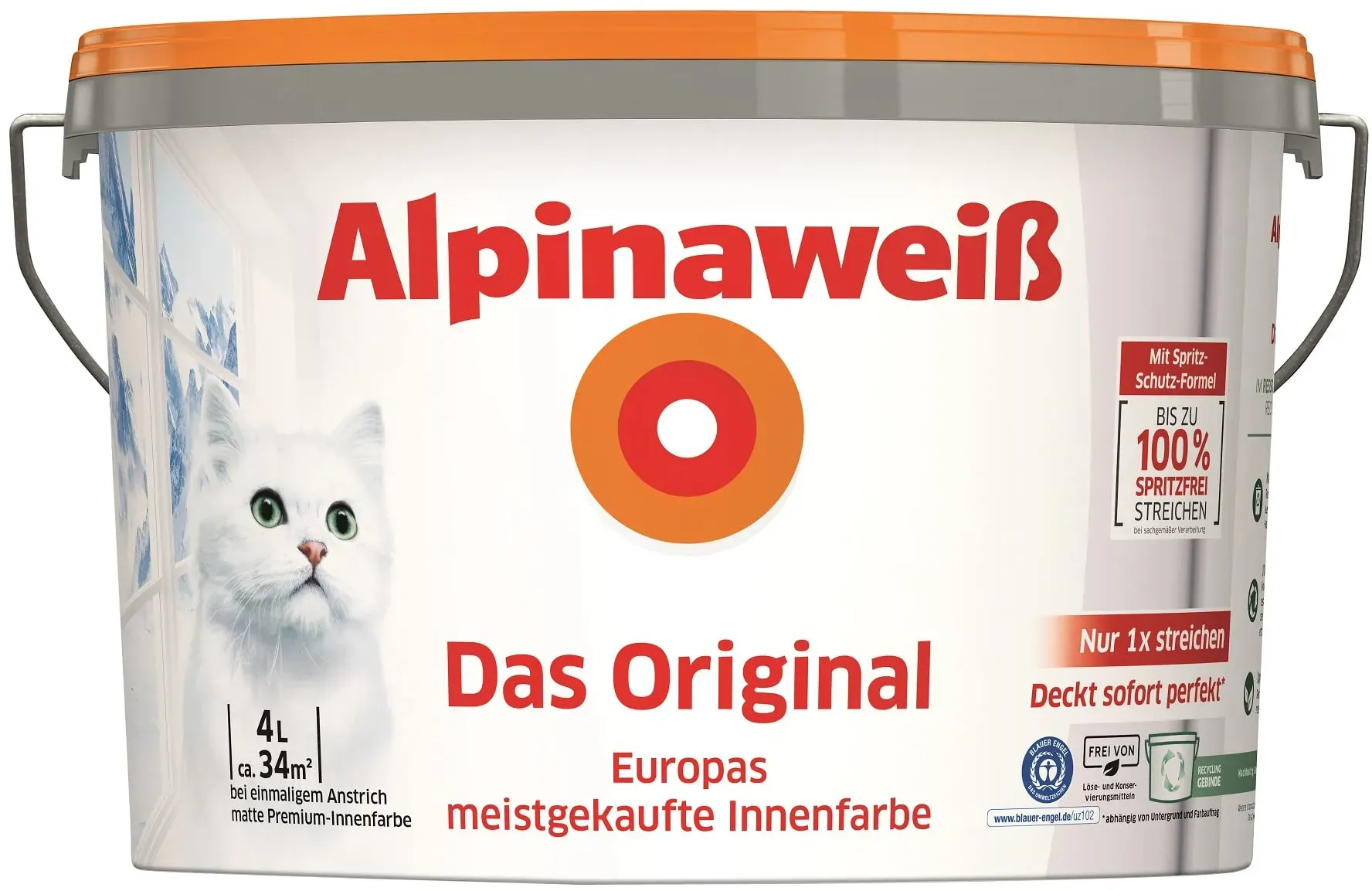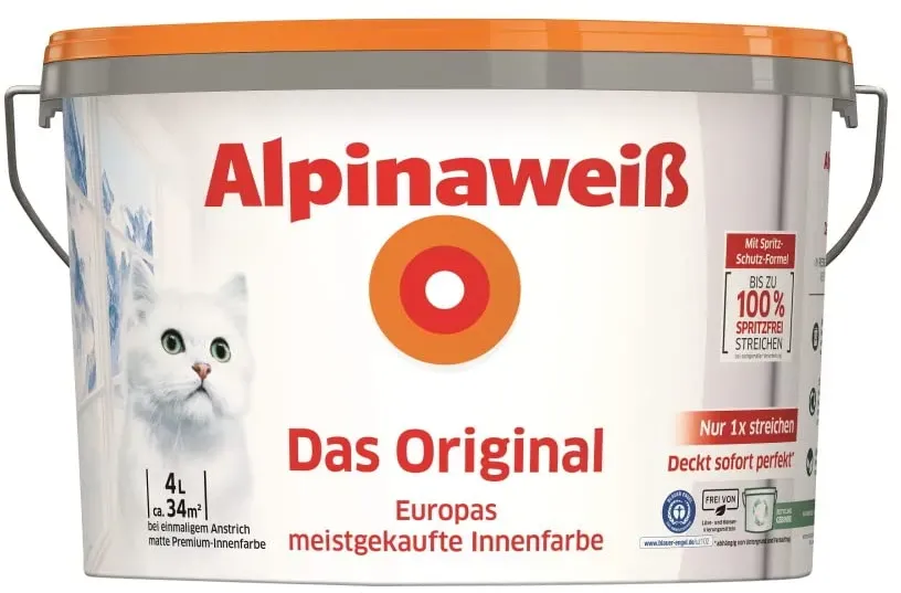 Zustand: Neu - 9,80 € / l - Wandfarben - Alpina Alpina Farben GmbH - - EAN: 0718347506481 - Testsieger Innenfarbe Weiß bei Stiftung Warentest, Ausgabe 05/2012. Alpinaweiß, Europas meistgekaufte weiße Wandfarbe Deckvermögen Klasse 1 bei einer Ergiebigkeit von ca. 7 m²/ Liter Perfekte Deckkraft: deckt beim ersten Anstrich - 2 Händler im amazon.de Marketplace ![]() ![]() Innenfarbe weiß - Alpinaweiß Das eBay Original spritzfrei scheuerbeständig matt 4L