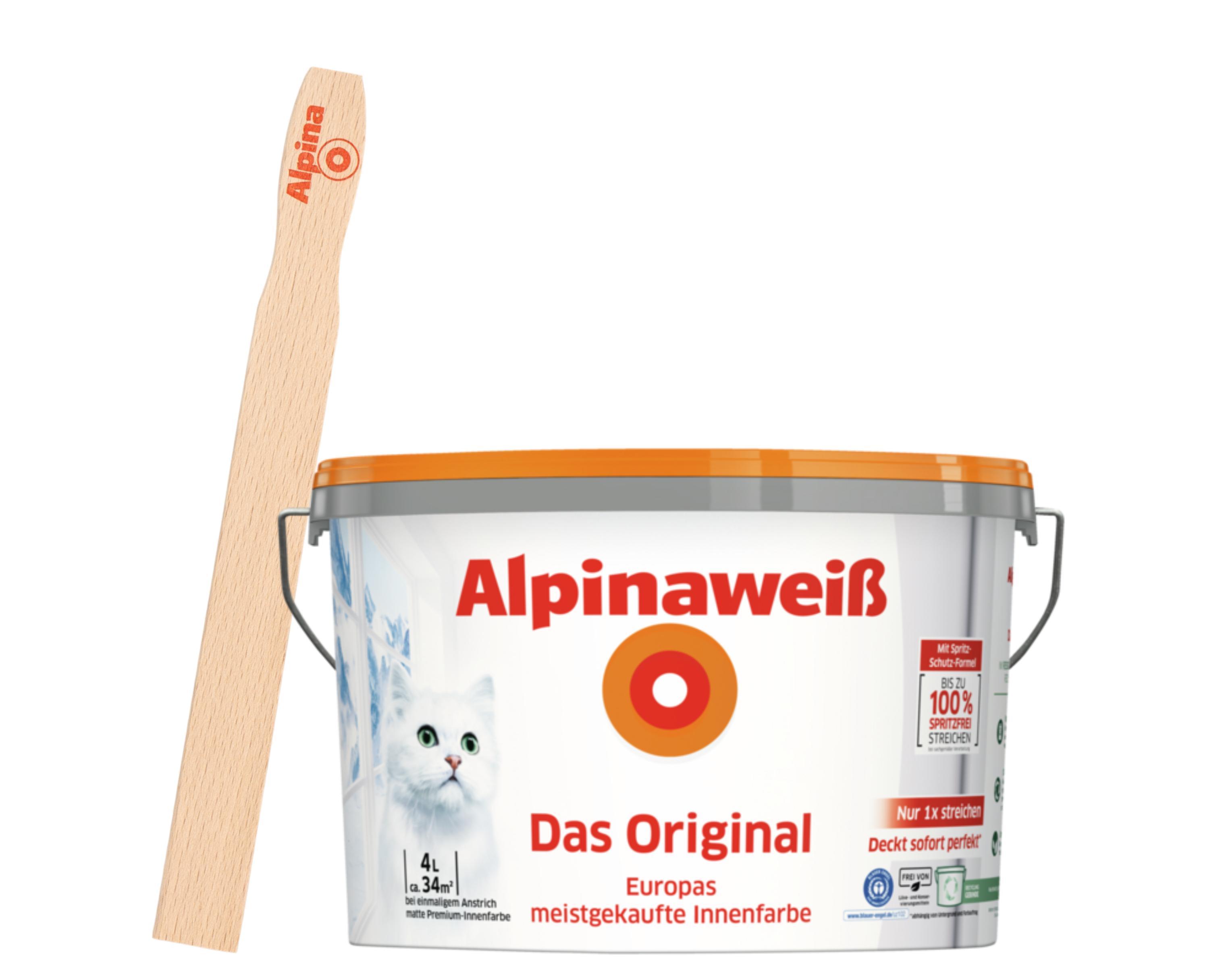 Zustand: Neu - 9,75 € / l - Wandfarben - Alpina - 1 - EAN: 4034139170255 - DAS ORIGINAL: Alpinaweiß das Original - seit über 10 n bringt die Alpinaweiß Wandfarbe strahlendes Weiß an die Wände ganzer Generationen HOHE DECKKRAFT: Die Alpinaweiß Wandfarbe deckt nach nur einem Anstrich optimal und bietet somit auf einem trockenen, festen und tragfähigen Untergrund optimale Streich-Ergebnisse SPRITZFREIES STREICHEN: Die Wandinnenfarbe ist mit einer speziellen Spritz-Schutz-Formel ausgestattet, wodurch das Risiko von Spritzern und Tropfen bei der Verarbeitung minimiert wird OPTIMALES RAUMKLIMA: Die Wandfarbe ist frei von Löse- und Konservierungsmitteln. Zudem ist sie emissionsarm und geruchsneutral, wodurch die Raumluft nicht negativ beeinflusst wird PRAKTISCHES BUNDLE: Neben der ergiebigen Wandfarbe ist zudem ein praktisches Rührholz in dem Bundle enthalten - Verkäufer: cd-hammerpreise im amazon.de Marketplace ![]() ![]() Alpinaweiß - Das Original, 4 Liter, weiße Wandfarbe, höchste Deckkraft, deckt beim ersten Anstrich