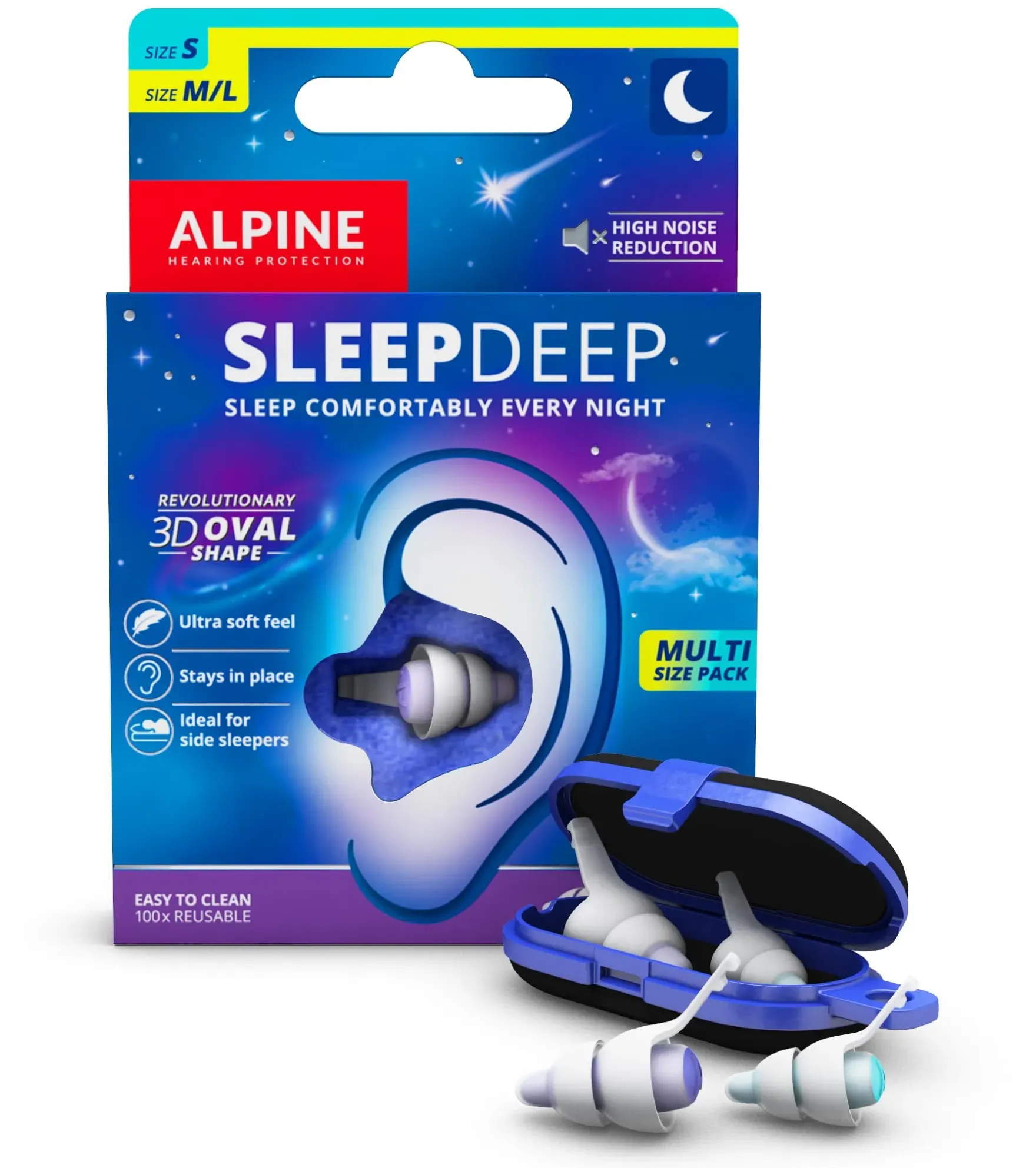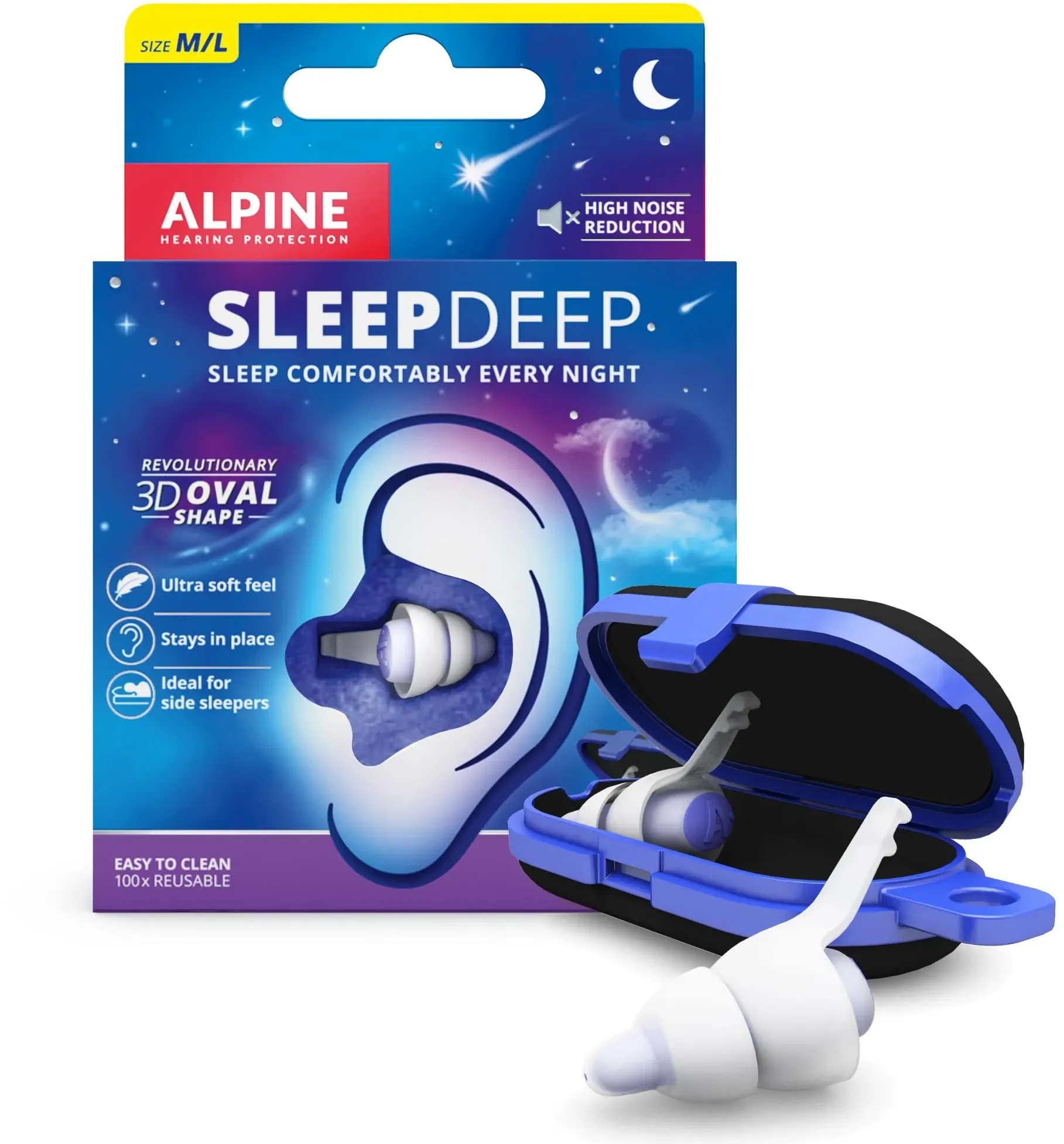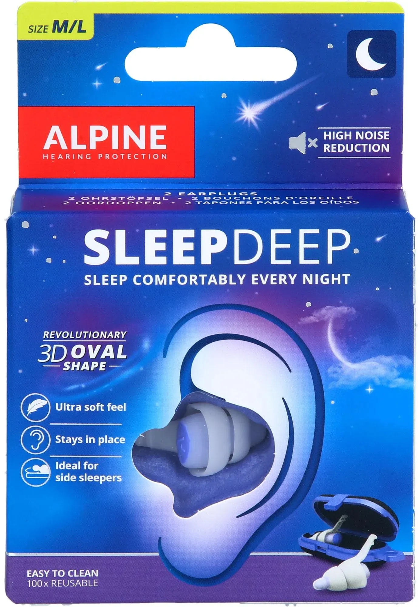Auf Lager Versand durch AmazonAlpine SleepDeep - Ohrstöpsel zum Schlafen und für Konzentration - 27dB - Neue 3D-Ovalform Ohrenstöpsel und weicher, geräuschdämpfender Kern für maximalem Komfort und Dämpfung - Größe M/L