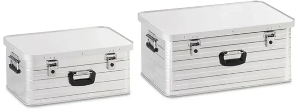 Kategorie: Aufbewahrungsboxen - Enders - GTIN:4000591038730 - Hochwertige Aluminiumbox von Enders, dicht gegen Spritzwasser und Staub durch Moosgummidichtung Vielseitig als Aufbewahrungsbehälter und Transportbehälter zuhause, beim Camping etc. einsetzbar, stapelbar durch Begrenzung im Deckel 1 Front-Griff aus Kunststoff und 2 seitliche Alu-Griffe (ummantelt mit Kunststoff) für komfortables Tragen, inklusive Hangtag zum Beschriften Inklusive Schloss-Set zum sicheren Abschließen der Box (2 Zylinderschlösser + 2 Schlüssel gleichschließend, pro Schloss-Set andere Schlüsselnummer), leichte Montage Aluminiumkisten mit extra stabiler Rahmenkonstruktion für besonders hohe Formstabilität, Boden zur Standfläche zurückgesetzt - 88,25 Euro bei Amazon Marketplace Home Improvement - gefunden von billiger.de Die ALUBOX R U80 Liter Lagerbox ist eine robuste Metallbox, die sich gut für Lagerzwecke eignet. ![]() ![]() ALUBOX R - U80 Liter eBay Lagerbox Alukiste Metallbox Palettenbox 58,5 x 38,5 x 37 cm