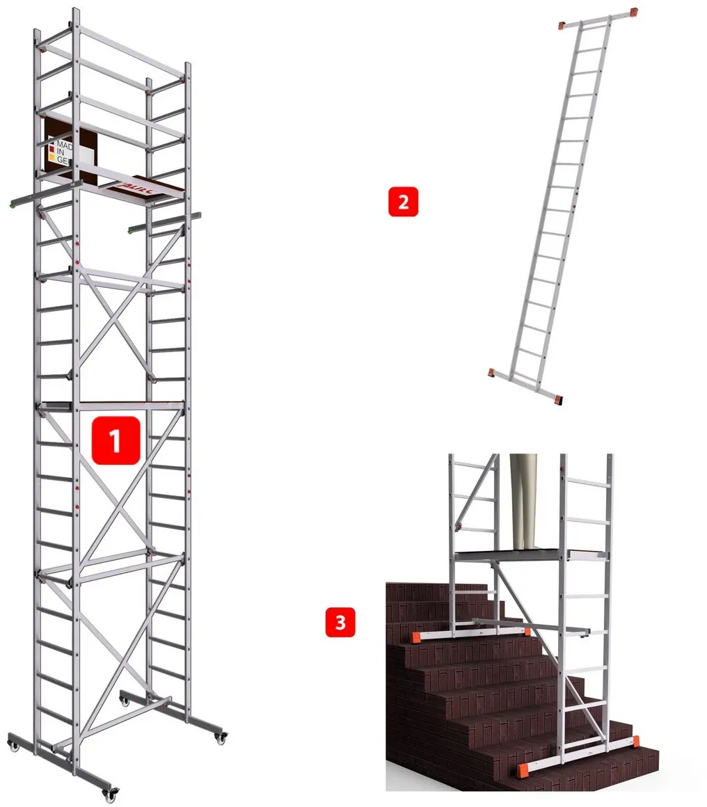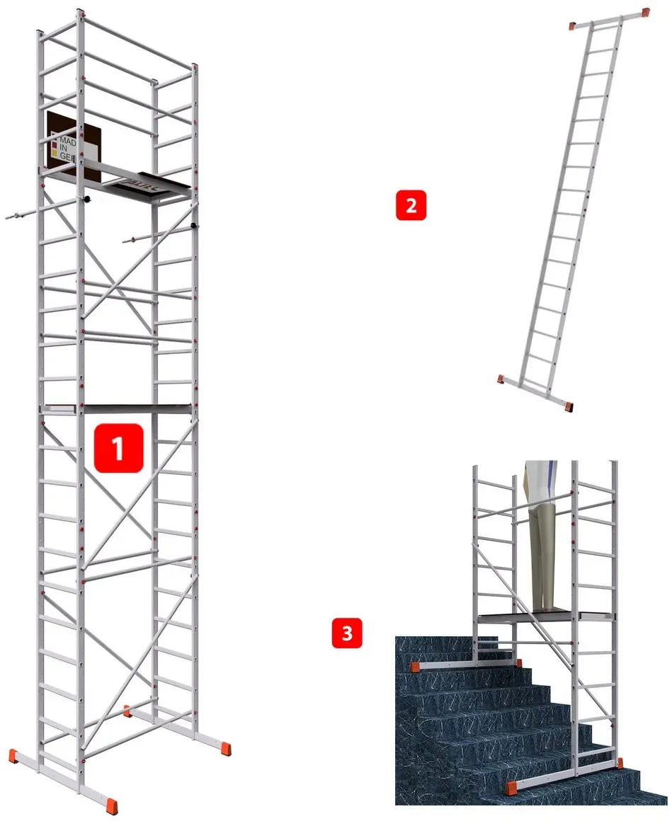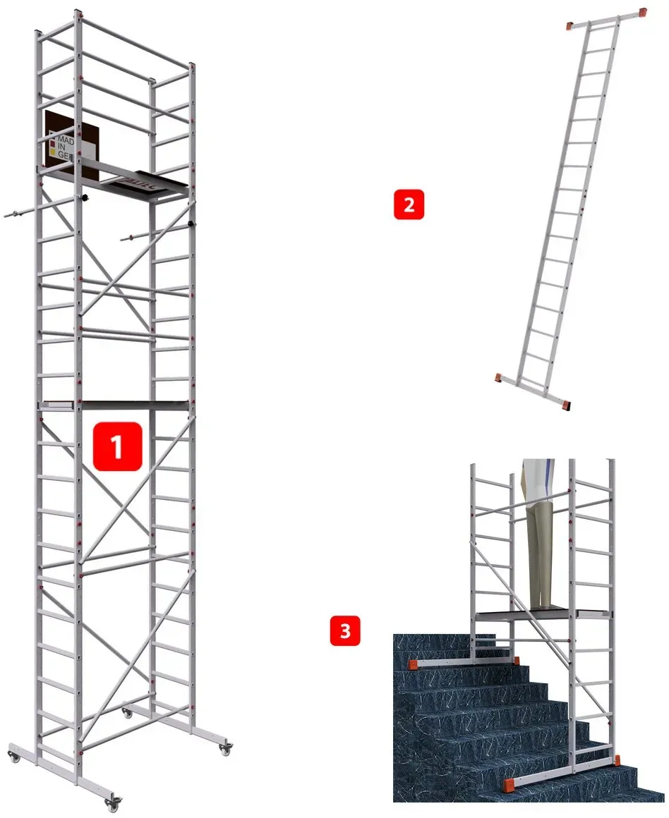 lieferbar-in 2-3 Werktagen bei dirALTEC Aluminium Fahrgerüst AluCombine 1.0, Leiterngerüst mit Traverse, 4 Laufrollen, maximale Arbeitshöhe 7 Meter 700 cm