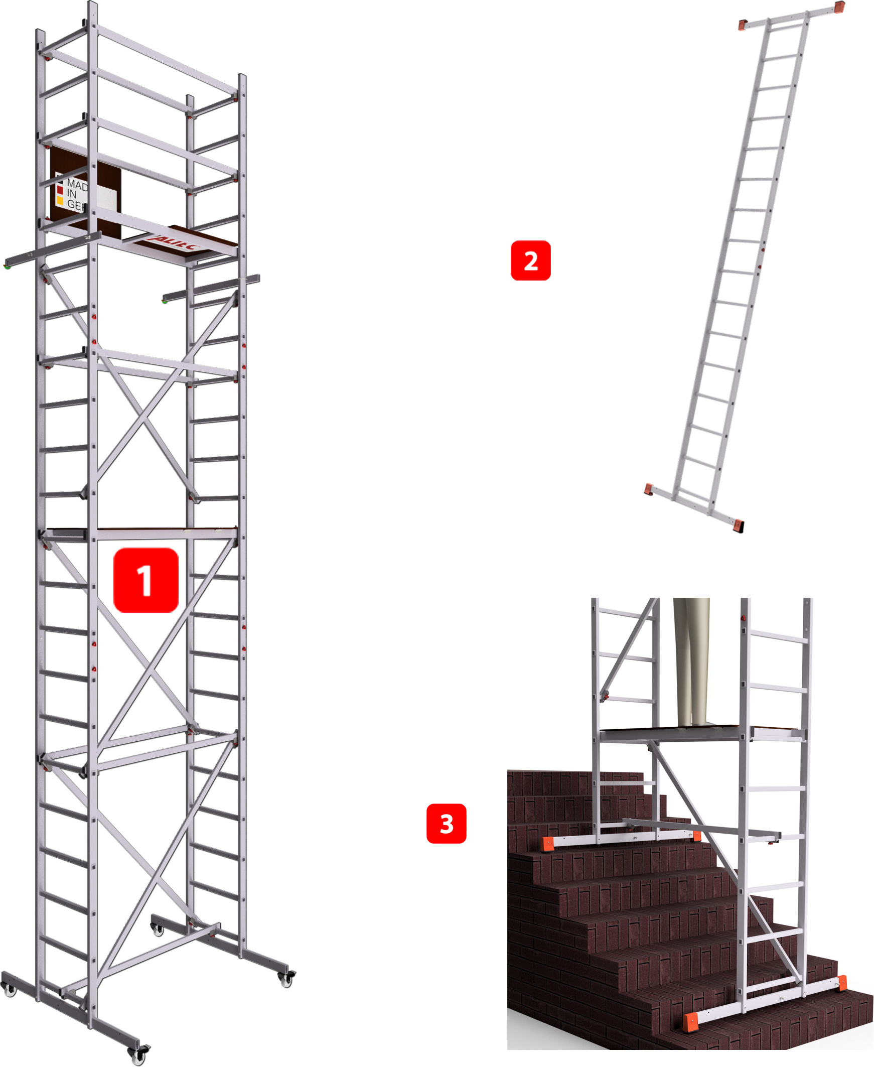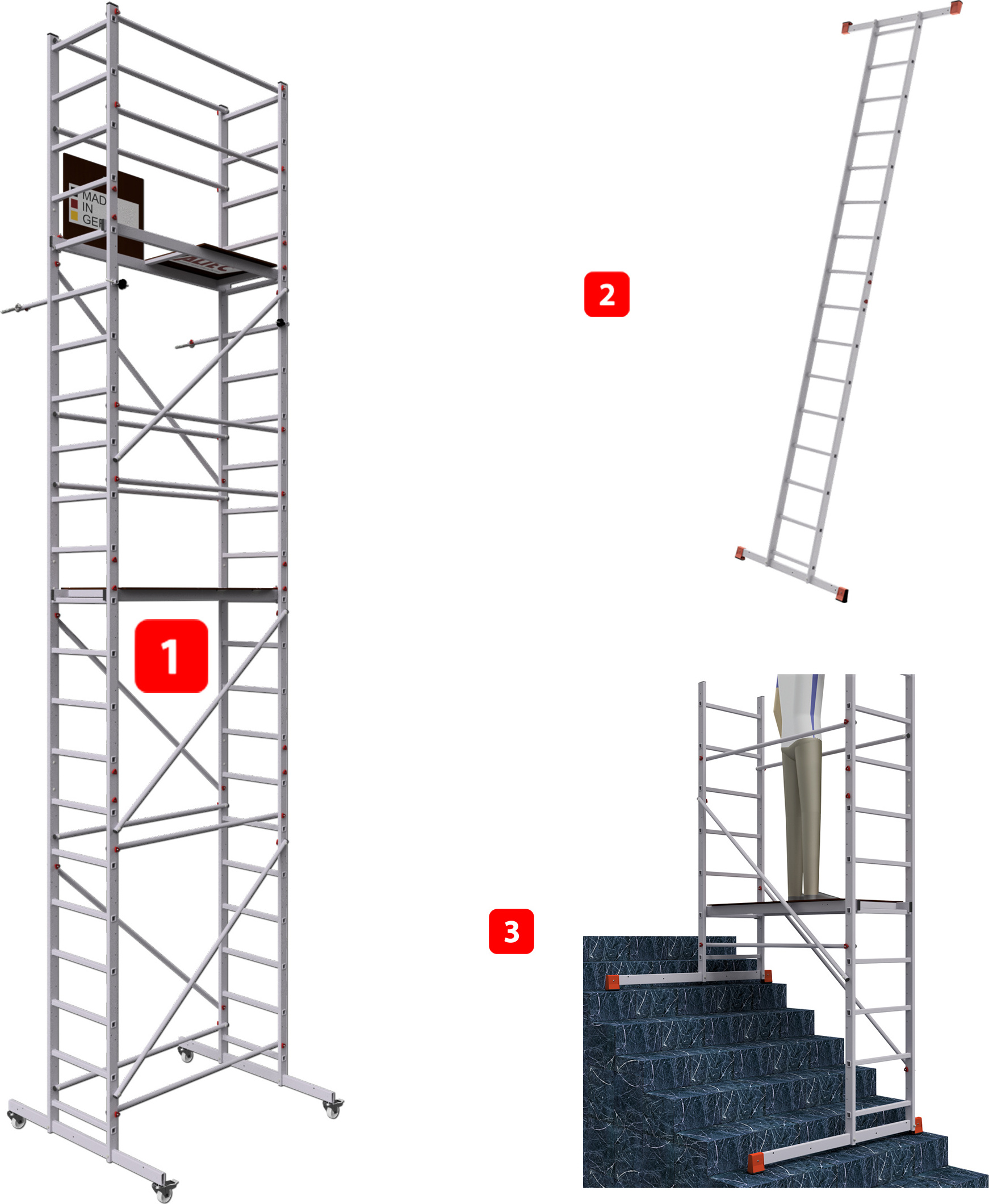 lieferbar-in 2-3 Werktagen bei dirALTEC Aluminium-Technik ALTEC Aluminium Fahrgerüst AluCombine 3.0, Alu Fahrgerüst mit 4 Laufrollen & Wandanker, maximale Arbeitshöhe 7 Meter 700 cm