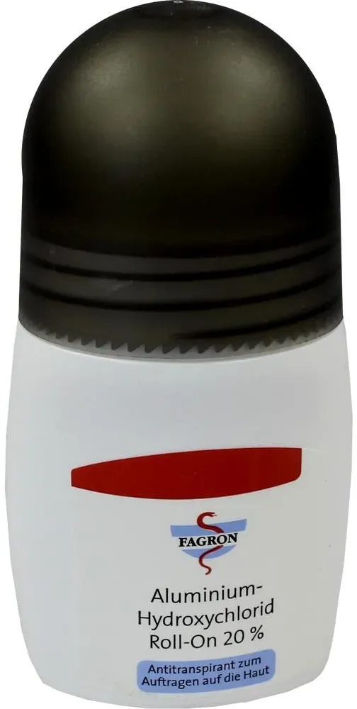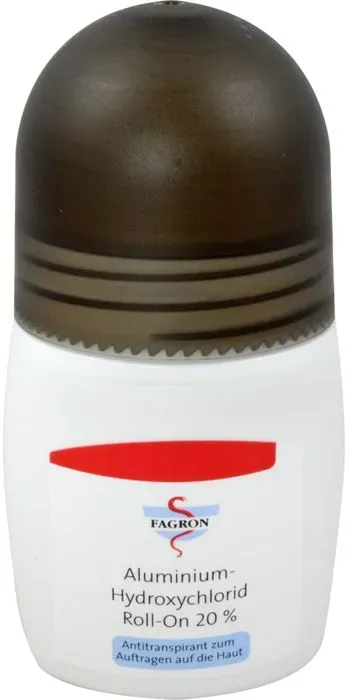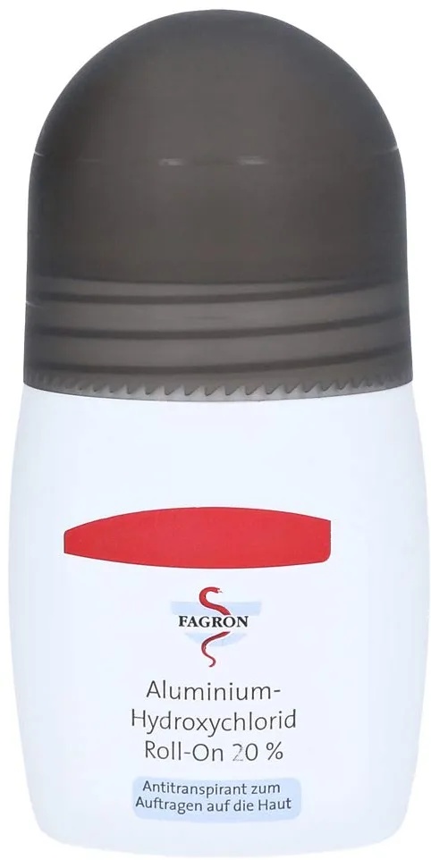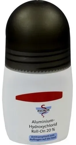 237.80 eur / 1l - Deodorant Roll-Ons 'Kosmetik Körper' Deodorants - EAN:4150013382443 - Zur Behandlung übermäßiger SchweißbildungUnd zur Verhinderung unangenehmer Körpergerüche.An Achseln, Handflächen und Fußsohlen einsetzbar.Anwendung:Jeden 2. Tag vor dem Schlafengehen zur Vermeidung von Hautirritationen. Nach ca. 2 Wochen reicht eine Auftragung 1x wöchentlich. - gefunden von Kelkoo ![]() ![]() ALUMINIUM HYDROXYCHLORID - Roll-on 20% eBay Fagron 50 ml PZN01338244