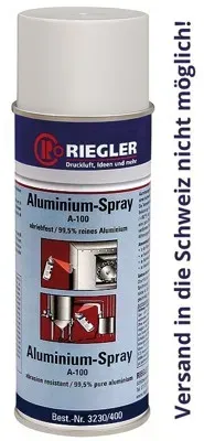40,22 /l - Kategorie: Automatisierungstechnik - Riegler - GTIN:4047322207218 - Aluminium-Spray, hochwertiger Korrosionsschutz für alle metallischen Oberflächen, Temp. max 800 C, 400 ml Hochwertiger Korrosionsschutz für alle metallischen Oberflächen, abriebfest. Beständig gegenüber vielen verdünnten Säuren und Laugen sowie gegen Witterungseinflüsse. Zur Anwendung in der Klima- und Lüftungstechnik, an Feuerungsanlagen, Rohrleitungen, Maschinengehäusen. - 16,09 Euro bei Toolineo - gefunden von billiger.de Dieses STALOC Alu-Spray zeichnet sich durch 100% Alu-Pigmente aus und bietet einen hochwertigen Aluminiumschutz. ![]() ![]() STALOC Alu-Spray ; Aluminium-Spray ; 100% Alu-Pigment ; 400 ml