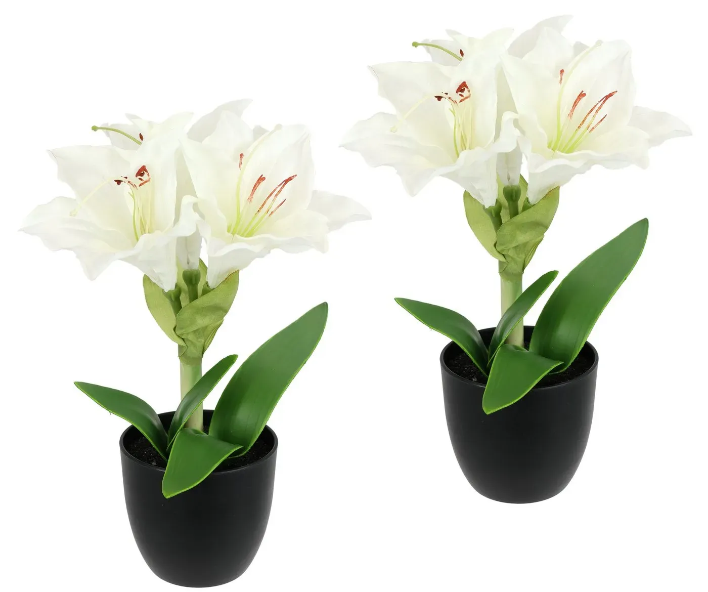 Künstliche Blumen Wohnen Dekoration Raumgestaltung - - Das 2er-Set künstliche Amaryllis im Topf vereint elegante Raumdekoration mit absoluter Pflegeleichtigkeit - perfekt als zeitlose Deko für das ganze Jahr und besonders als festliche Weihnachtsdeko oder stilvolle Winterdekoration. Jede Amaryllis ist 28 cm hoch und begeistert durch ihre detailreich gearbeiteten, weißen Blüten und naturgetreuen grünen Blätter. Die Pflanzen stehen in modernen schwarzen Kunststofftöpfen, die sich harmonisch in jeden Einrichtungsstil einfügen - ob klassisch, modern oder skandinavisch. Die hochwertigen Materialien aus Textil und Kunststoff sorgen dafür, dass die Kunstblumen dauerhaft frisch, farbintensiv und formstabil bleiben - ganz ohne Gießen oder Sonnenlicht. Damit ist das Amaryllis-Set ideal für Wohnzimmer, Esszimmer, Flur, Bad oder Büro. Besonders in der kalten Jahreszeit bringt die warme rote Farbgebung weihnachtliche Stimmung und natürliche Eleganz in dein Zuhause. Das 2er-Set bietet viele Gestaltungsmöglichkeiten: Beide Pflanzen können zusammen als harmonisches Arrangement auf dem Tisch, der Fensterbank oder dem Sideboard platziert werden oder einzeln verschiedene Räume schmücken. Kombiniert mit Kerzen, Lichterketten oder Tannenzweigen entsteht im Handumdrehen eine festliche Winterdeko mit luxuriösem Charakter. Auch als Geschenkidee ist dieses Set ideal - ob zu Weihnachten, zum Advent, zum Geburtstag oder als kleine Aufmerksamkeit für liebe Menschen. Die künstlichen Amaryllis sind ... Diese weiße Amaryllis im hübschen Keramiktopf ist eine stilvolle und fertige Dekorationslösung. ![]() Weiße Amaryllis im hübschen Keramiktopf
