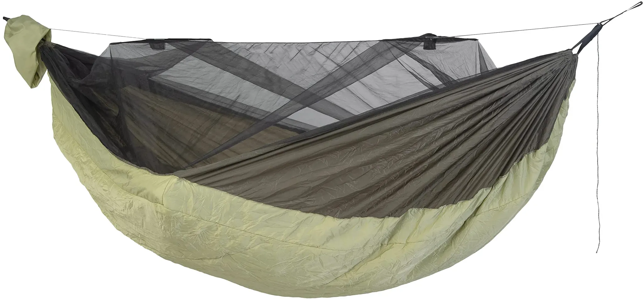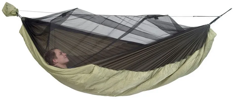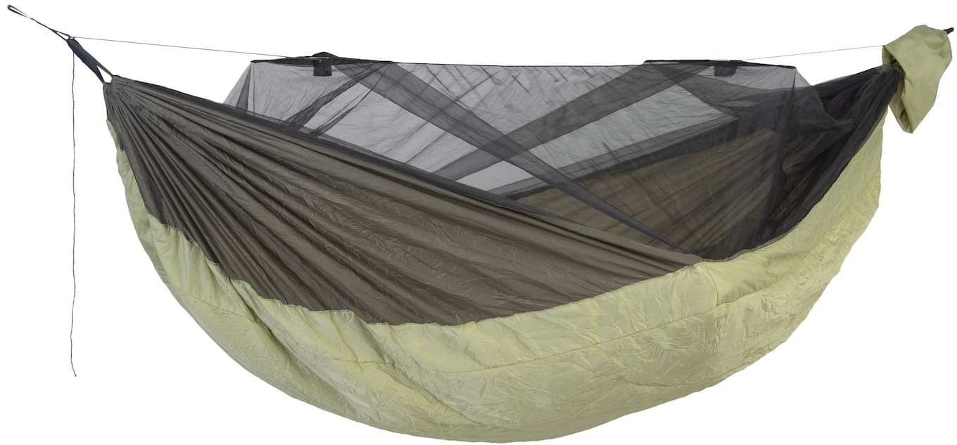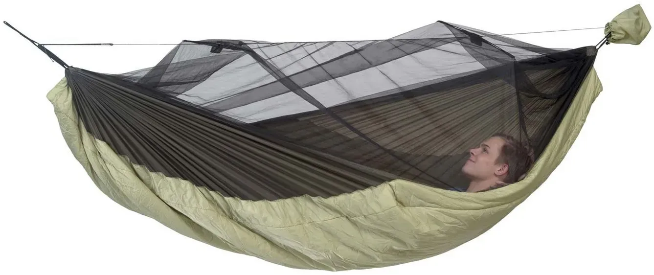 8 Händlerangebote bei billiger.de - Kategorie: Hängematten - AMAZONAS - Wer es liebt draußen zu sein und sogar an kühleren und kalten Tagen im Freien die Nächte zu verbringen ist mit der Hängematte Moskito-Traveller Quilted XXL bestens beraten, denn hier hast du nicht nur eine große Liegefläche, sondern zusätzlich einen integrierten Wärmeschutz von unten. Das spart vor allem die Mitnahme einer extra Isomatte oder eines Underquilt. Die Wärmeisolierung funktioniert wie ein eingebauter Underquilt und ist so angebracht, dass dieser bei Benutzung der Hängematte nicht zu stark an die Liegefläche gepresst wird das rt ein zusätzlich isolierendes Luftpolster zwischen Hängematte und Wärmedämmung.Das integrierte Moskitonetz bietet dir zusätzlich besten Schutz vor fliegenden und kriechenden Plagegeistern.Hängematte mit integriertem Underquilt aus Hohlfaserfüllungoptimaler Kälteschutz von untenMoskitonetzdiagonal verlaufenden Liegefläche mit eingebaute Wärmedämmung aus wärmender HohlfaserfüllungEinstieg einseitig durch DoppelreißverschlussMoskitonetz mit Spreizstäben (patentierten Spreizstäben schaffen großen)inkl. Seil zum Abspannen des Netzesauch ohne Moskitonetz nutzbarschneller Auf- und AbbauLiegefläche: 305 x 160 cmGesamtlänge (inkl. Aufhängeschlaufen): ca. 335 cmBelastbarkeit: max. 200 kgSleep zone: ca. 5 C / 41 FMoskitonetz: Ja, ca. 155-230 Maschen/cm2Material: 100% Nylon-Ripstop (210D)Füllung: 100% Hohlfaser (Polyester)Lieferumfang: Leichthängematte Moskito-Traveller Quilted XXL ... ![]() ![]() Amazonas Moskito - Traveller Quilted eBay Hängematte, Gr. XXL