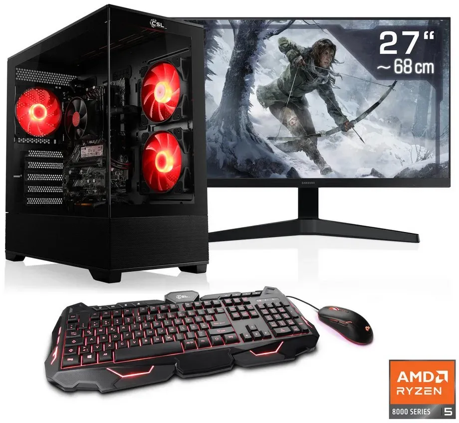 ![]() ![]() CSL AeroVision V24412 Gaming-PC-Komplettsystem (27", AMD Ryzen 5 8600G, 32 GB RAM, 1000 GB SSD) schwarz