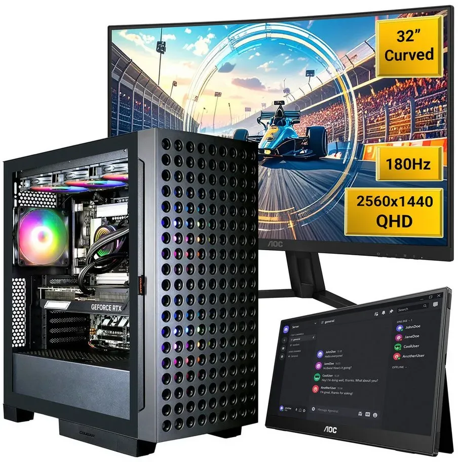 Verfügbarkeit: lieferbar-in 2-3 Werktagen bei dir - Kategorie: PCs - Hyrican - GTIN:4045643276005 - Allgemein Lieferumfang , Gaming-Maus & Gaming-Tastatur mit RGB-Beleuchtung Handbuch Netzkabel PC, Betriebssystem / Software Betriebssystem , Microsoft Windows 11 Home (64 Bit), Installationsart Betriebssystem , vorinstalliert, Prozessor Hersteller Prozessor , AMD, Serie Prozessor , Ryzen 5, Nummer Prozessor , 9600X, Bauart Prozessor , Hexa-Core, Generation Prozessor , Ryzen 5, Anzahl Prozessorkerne , 6, Taktfrequenz Prozessor , 3,9 GHz, Taktfrequenz Prozessor maximal , 5,4 GHz, Speicher Typ Arbeitsspeicher , DDR5, Speicherkapazität Arbeitsspeicher (RAM) , 32 GB, Taktfrequenz Arbeitsspeicher , 5,6 GHz, Typ Festplatte , SSD, Anschluss Festplatte , M.2 PCIe, Speicherkapazität Festplatte gesamt , 1000 GB, Speicherkapazität Festplatte SSD , 1000 GB, Modell Arbeitsspeicher , 2x16GB RAM DDR5 5600MHz, Grafikkarte Hersteller Grafikkarte , Nvidia, Typ Grafikkartenspeicher , GDDR7, Modell Grafikkarte , RTX 5070Ti, Serie Grafikkarte , GeForce RTXTM 5070Ti, Art Grafikkarte , interne diskrete Grafikkarte, Speicherkapazität Grafikkarte , 16 GB, Unterstützte DirectX-Version , 12, Anschlüsse Typ Anschluss , Audio Display-Port HDMI LAN Mikrofon PS/2 USB, Typ USB-Anschluss , Standard-USB, Anzahl USB-Anschlüsse , 12, Anzahl USB-2.0-Anschlüsse , 5, Anzahl USB-3.0-Anschlüsse , 1, Anzahl USB-3.1-(Typ C)-Anschlüsse , 1, Anzahl USB-3.2 Gen 1-Anschlüsse , 3, Anzahl USB-3.2 Gen ... Ein umfassendes Gaming-PC-Komplettsystem mit RTX 5070, 2TB SSD und einem 32-Zoll-Monitor, das ein sofort einsatzbereites High-End-Setup bietet. ![]() ![]() Cougar AIRFACE ECO BK SET2656 AMD Ryzen 5 9600X RTX 5070 32GB DDR5 2TB SSD Gaming-PC-Komplettsystem (32", AMD Ryzen 5 9600X, RTX 5070, 32 GB RAM, 2000 GB SSD, Windows 11, DDR5 RAM + 32" AOC CQ32G4VE Curved Gaming-Monitor) schwarz