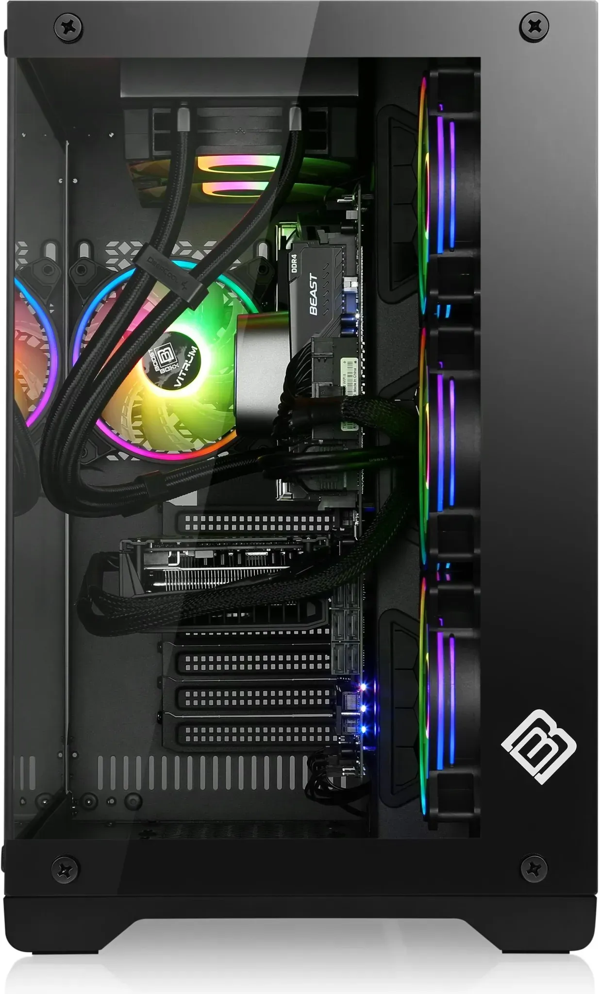 Verfügbarkeit: Auf Lager - Kategorie: PCs - GameMachines - Mit seinem eleganten Panoramadesign, ist der Fury ein Blickfang auf deinem Schreibtisch und stellt dank Tempered-Glass-Seitenteilen und Front die verbaute Hardware bestmöglich zur Schau. Verbaut sind bereits 7x 120mm A-RGB Lüfter, deren Beleuchtung du über einen Knopf am Gehäuse steuern kannst. Der Air240 RGB ist ein stylischer Dual-Tower-Luftkühler, der mit 6 leistungsstarken Heatpipes ausgestattet ist, die eine jederzeit effiziente Wärmeübertragung von der CPU zum Kühlkörper gewährleisten. Zusätzlich zu seiner tollen RGB Beleuchtung ist er darauf ausgelegt auch bei anspruchsvollen Anwendungen stets eine optimale Temperatur zu halten. Dies ermöglichen zwei präzise steuerbare 120-mm-Lüfter, Kompatibilität zu selbst den neusten CPU-Sockeln sowie eine ausgezeichnete TDP von 280 W. Sie bekommen einen komplett eingeSie bekommen einen komplett eingerichteten Rechner, den Sie sofort benutzen können. Windows 11 Professional 64bit und alle Treiber sind fertig installiert.richteten Rechner, den Sie sofort benutzen können. Windows 11 Professional 64bit und alle Treiber sind fertig installiert. Unsere Amazon-Kunden erhalten beim Kauf dieses Rechners einen erweiterten Premium Vor-Ort Abholservice ( Pickup & Return ). Im Servicefall wird Ihr Computer kostenlos bei Ihnen abgeholt und wieder zugestellt. - 1679,00 Euro bei Amazon Marketplace PC Notebook - gefunden von billiger.de Dieses Angebot bietet 64 GB RAM und 2 TB SSD, was es ideal für Multitasking und speicherintensive Anwendungen macht. ![]() ![]() Captiva R89-886 (2000 GB, 64 GB, AMD Ryzen 7 7800X3D, GeForce RTX 5070), PC, Schwarz