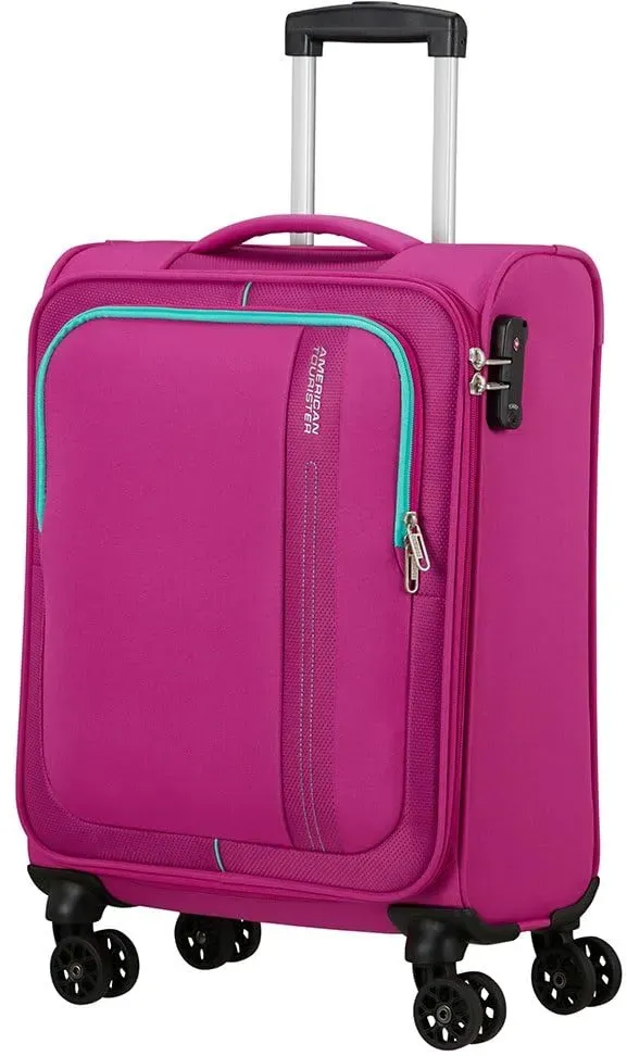 Kategorie: Trolleys - American Tourister - GTIN:5400520300904 - Spinner 55 (Handgepäck: 2 Tage verreisen): 40 x 20 x 55 cm, 36 L, 2.50 kg 3-stelliges TSA-Schloss Großes Frontfach bei allen Modellen für zusätzlichen Stauraum. Doppelrollen sorgen für ein reibungsloses Rollverhalten Sportlicher Look: Der reichhaltige Materialmix aus widerstandsfähigem Polyester und die farblich akzentuierten Details sowie das aufgedruckte Logo und die Akzentnähte verleihen der Serie einen sportlichen Look. - 87,27 Euro bei Amazon Marketplace Luggage - gefunden von billiger.de Dieser Spinner S ist eine gute Wahl für Reisende, die einen stilvollen und funktionalen Koffer suchen. ![]() ![]() American Tourister Sea Seeker - Spinner S, Handgepäck, 55 cm, 36 L, Rosa (Deep Fuchsia)