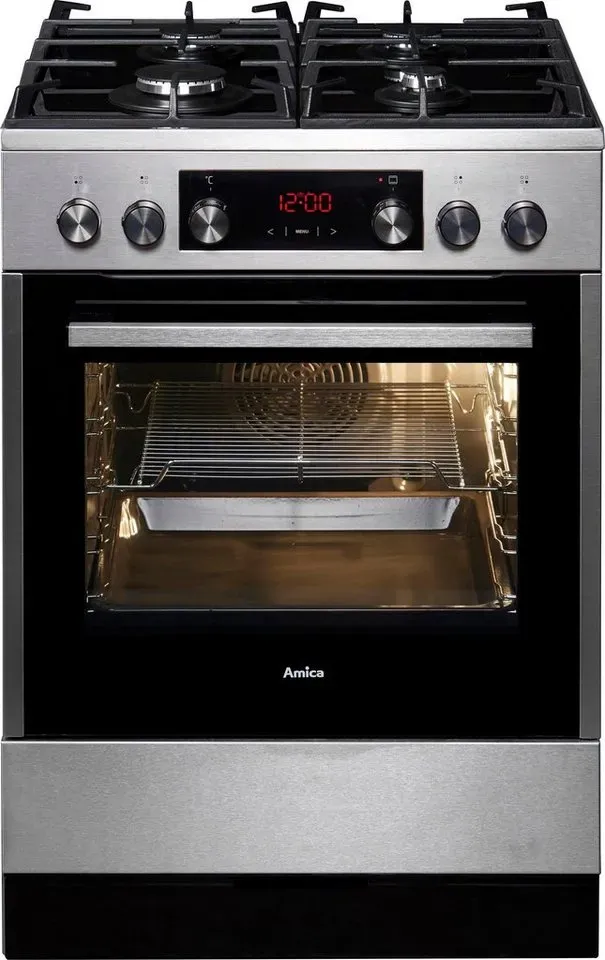 Verfügbarkeit: Auf Lager - EEK: A - Kategorie: Standherde - Amica - GTIN:5906006562328 - 11 Backofenfunktionen, Heißluft mit Ringheizkörper Gaskochfeld, 4 Brenner - thermoelektrische Zündsicherung für alle Brenner SoftClose Tür Topfträger aus Gusseisen, abnehmbar Einhand-Funkenzündung - 558,95 Euro bei Amazon Marketplace CE - gefunden von billiger.de ![]() ![]() Gas Standherd - 60cm Edelstahl eBay 4 Brenner Gaskochfeld Elektro Backofen 65L