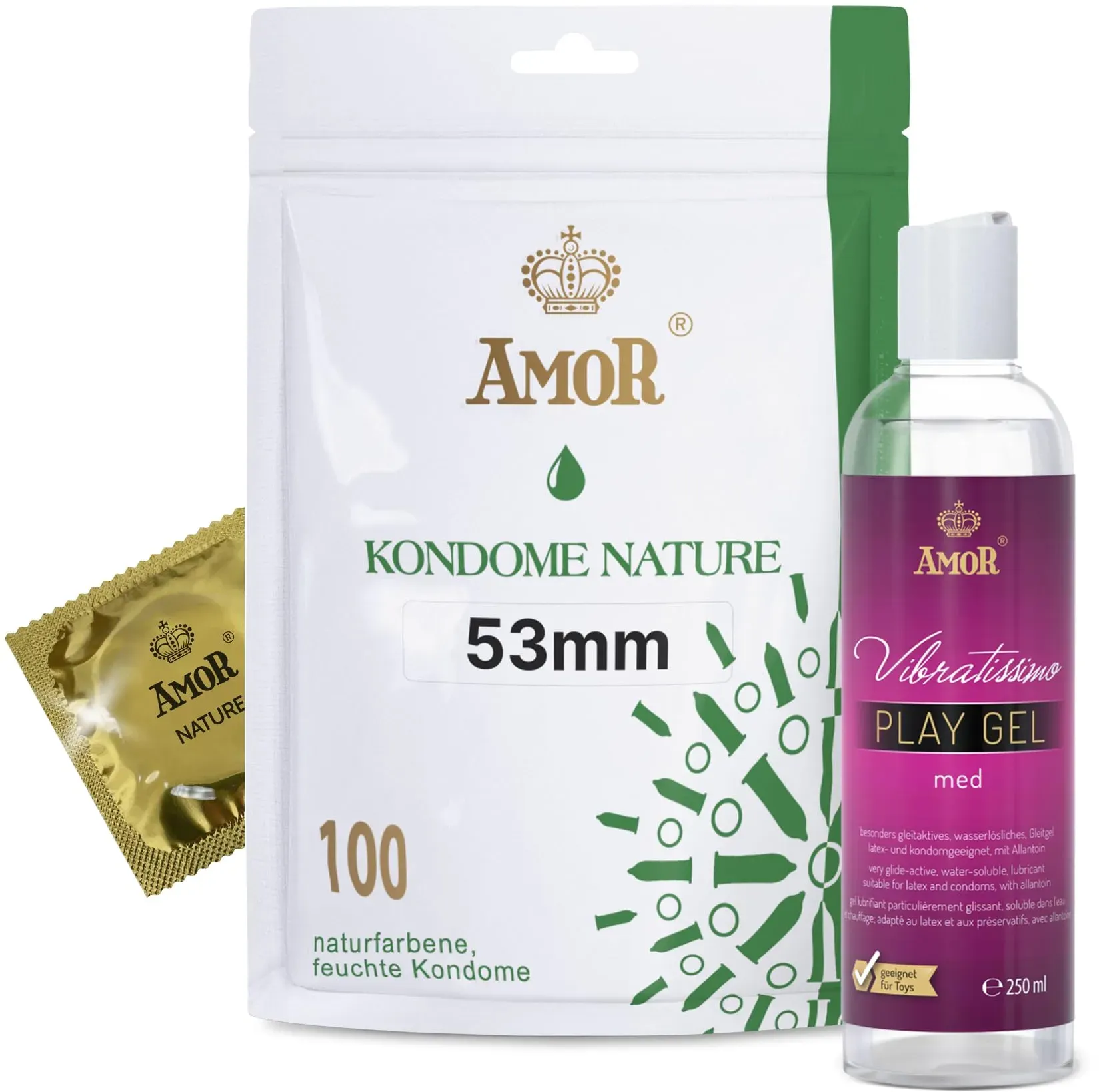 Kategorie: Gleitmittel - Amor - GTIN:4019514702054 - LET THE FUN BEGIN: Mit dem Vibratissimo Play Gel med 250 ml und unseren Amor Kondomen Nature hast du alles, was du für einen romantischen Abend zu Zweit brauchst. Für mehr Sinnlichkeit und längeren Sex. DAS BEKOMMST DU: AMOR Set. 100 Kondome Nature 53 mm + Vibratissimo Play Gel med 250 ml. Gem. EU-Richtlinie f. Medizinprodukte 93/42 EWG VERLäSSLICH: AMOR Kondome aus Naturkautschuk bzw. Latex punkten durch ihre ideale Passform und liegen sicher wie eine zweite Haut an. Sie haben ein Reservoir, sind feucht und lassen sich leicht abrollen. SICHER: Jedes einzelne Kondom wird elektronisch getestet, verpackt und versiegelt, um Beschädigungen vorzubeugen. In der Gebrauchsanleitung findest du wertvolle Tipps zum Gebrauch. NOCH SINNLICHER: Das Amor Vibratissimo Gleitmittel auf Wasserbasis mit Langzeit- Gleiteigenschaft ist dermatologisch getestet, besonders hautfreundlich, sehr ergiebig und leicht abzuwaschen. - 22,95 Euro bei Amazon Marketplace Health & Personal Care - gefunden von billiger.de ![]() ![]() ™¥ 100 - Amor Kondome eBay Nature 52mm + 20ml Just Glide Waterbased Condome