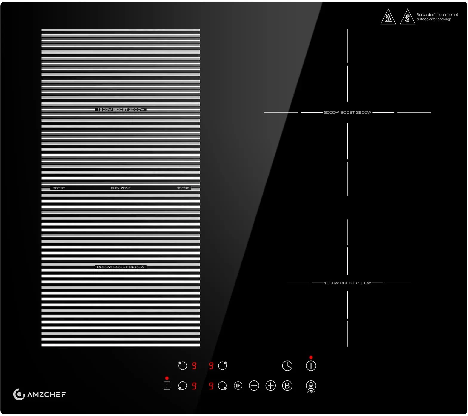 Auf Lager Versand durch AmazonAMZCHEF Induktionskochfeld 60cm mit Zwei Flexzonen, 4 Zonen Induktionskochplatte mit Boost-Funktion und 9 Leistungsstufen, Touch-Bedienung, Timer, Sicherheitsschloss, Überhitzungsschutz, BBQ, 7200W
