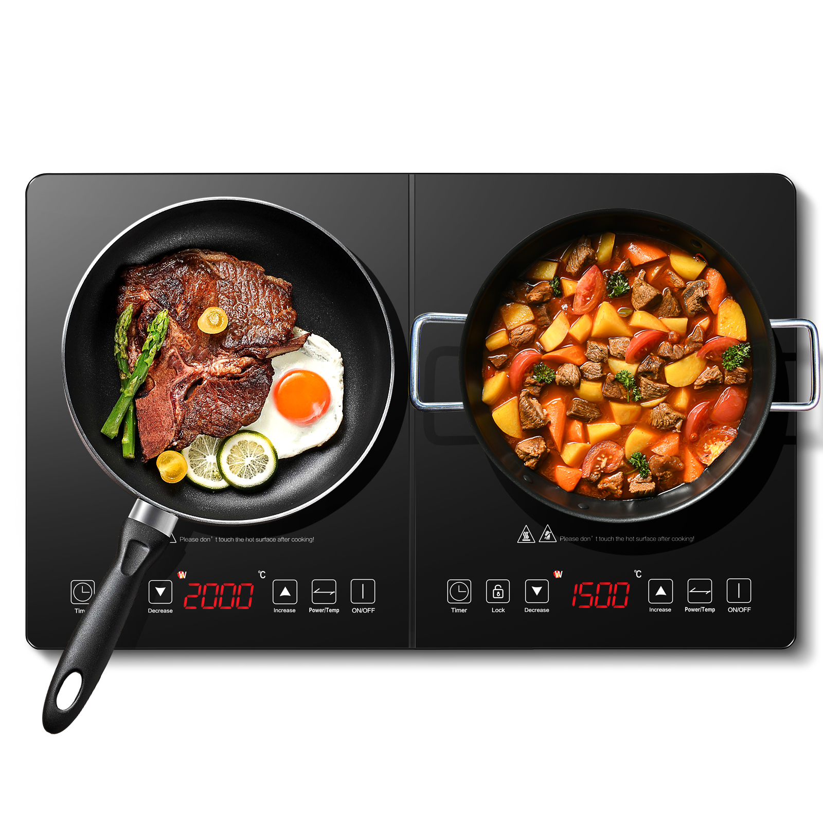 Auf Lager Versand durch AmazonAMZCHEF Induktionskochfeld 2 Platten Freistehend, Induktionskochplatte 2 Platten 3500W mit Unabhängigen Steuerungen, 20 Temperaturstufen, mehrere Leistungseinstellungen, 4-Stunden-Timer