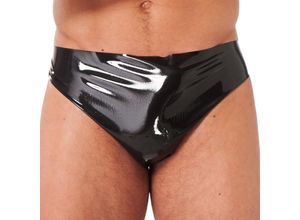 keine Angabe Nur noch 2 auf LagerRubberfashion Kurzer Sexy Rubber Slip - Schwarz Latex Pants mit Anal-Dildo - Latex Dessous Damen und Herren 0.4mm XXXL