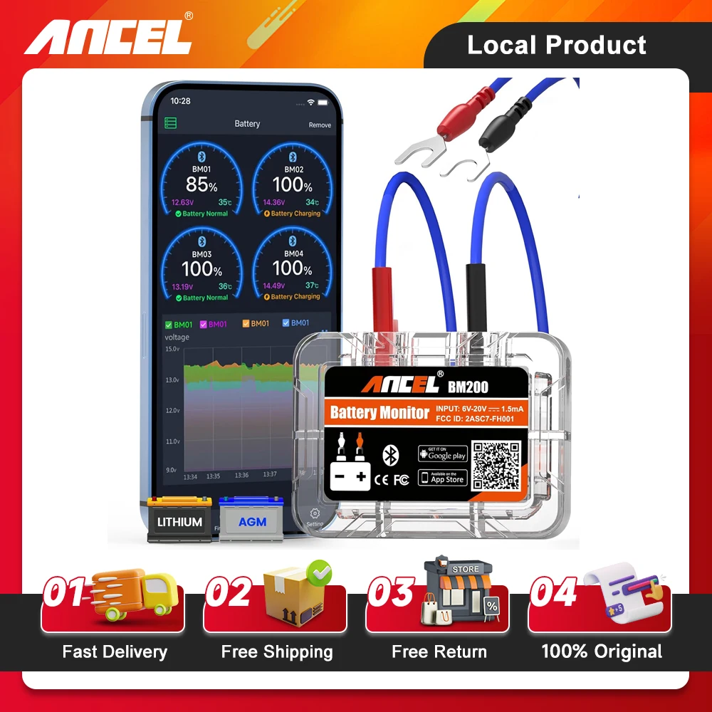 ANCEL - ANCEL BM200 12V Auto Batterie Monitor 12V Batterie Gesundheit überwachung Drahtlose Bluetooth 4,2 Für Android IOS APP Batterie tester Werkzeug - bei de.aliexpress.com - aus Yadore Produktdaten Dieses Angebot ist sehr preiswert und ermöglicht die Ã?berwachung von bis zu 4 Autos, ideal für Haushalte mit mehreren Fahrzeugen. ![]() ANCEL BM200 Drahtloser Bluetooth-Batteriemonitor, 12 V, Autobatterie-Gesundheitsüberwachung, Batterietester, unterstützt max. 4 Automonitore