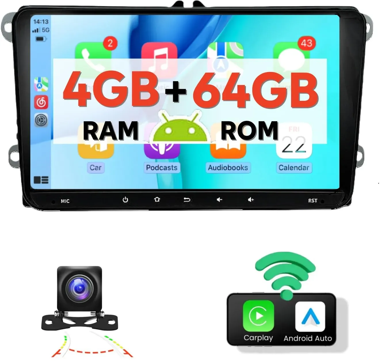 Kategorie: Car-Multimedia-Systeme - adelagnes - GTIN:0749614735617 - Wireless Carplay & Android Auto: Verbinden Sie den tragbaren Carplay-Bildschirm für das Auto einfach mit Ihrem Smartphone und Sie können ganz einfach Siri Voice verwenden, um Anrufe freihändig zu tätigen/empfangen, Ihre Lieblingsmusik abzuspielen,Navigation und mehr. Mit Airplay und Android Cast können Sie alle Inhalte Ihres Smartphones, einschließlich Videos und Filme, nahtlos mit dem hochauflösenden IPS-Touchscreen des a-pple/android auto carplay verbinden und synchronisieren und so Ihre Fahrt mit audiovisueller Unterhaltung bereichern. 4K DashCam Aufnahme und 1080P Rückfahrkamera: Die 4K-Frontkamera liefert eine extrem hohe Auflösung und ermöglicht es dem Fahrer, klare und detaillierte Bilder aufzunehmen. Sie liefert klare Videobeweise bei Verkehrsunfällen und hält wichtige Momente während der Fahrt fest. Die wasserdichte 1080p-Rückfahrkamera arbeitet auch bei widrigen Wetterbedingungen wie Regen und Nebel zuverlässig und sorgt dafür, dass der Fahrer bei allen Wetterbedingungen eine klare Sicht nach hinten hat. unterstützt gleichzeitige Aufnahmen. Intelligente Sprachsteuerung und Navigation: Das Autoradio Carplay bietet eine intelligente Sprachsteuerung über Siri und Google-Systeme. Ohne den Bildschirm zu berühren, können Sie ganz einfach Telefonanrufe tätigen/empfangen, Musik hören und die Freisprechfunktion verschiedener Funktionen mit einem einzigen Sprachbefehl nutzen, was Ihre Fahrsicherheit ... Dieses ACAVICA Autoradio für 189,99 Euro ist eine leistungsstarke Option mit 9 Zoll Android, Wireless CarPlay, Android Auto und Octa-Core Prozessor für VW Modelle. ![]() ![]() ACAVICA Autoradio 9 Zoll Android für VW Golf 5 6 Passat B6 Polo Touran Caddy Wireless CarPlay Android Auto Bluetooth DSP Navi WiFi Octa-Core Auto Radio Touch Display 4GB+64GB mit Bildschirm