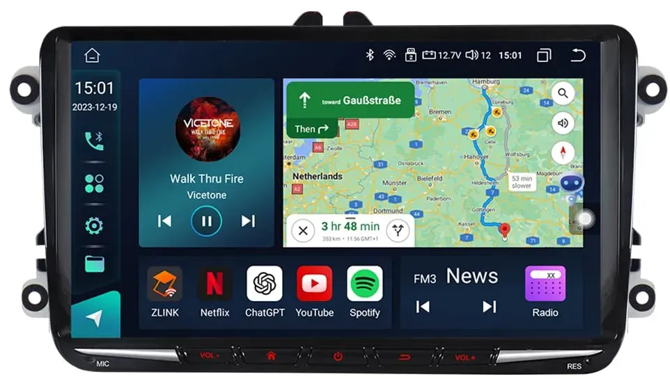 Kategorie: Car-Multimedia-Systeme - epronic - 4+64GB Android Autoradio für Volkswagen: 9 Zoll 1080P HD Touchscreen Autoradio für Volkswagen/Golf 5/Golf 6/Passat/Skoda/Seat etc. Das Autoradio nimmt Android 13 System, 4GB RAM+64GB ROM große Kapazität sorgt für reibungslose Laufgeschwindigkeit und Speicherplatz Kabelloses Apple Carplay und Android Auto: über die Zlink 5 App im Android Autoradio können Sie eine kabellose oder kabelgebundene Verbindung zu Carplay und Android Auto wählen, um auf die Kontakte, E-Mails, Navigation, Videos, Musik und andere Informationen Ihres Telefons zuzugreifen und die Sprachsteuerung zu realisieren WiFi und GPS Navigation: Android Autoradio unterstützt Navigation/Mobil-Hotspot-Verbindung, Sie können YouTube, Tik Tok, Spotify und andere Apps, die Sie mögen, über Playstore herunterladen. Das Autoradio hat eine integrierte GPS-Navigation und unterstützt die Verwendung von Online-/Offline-Karten EQ Sound und Geteilter Bildschirm Funktion: Autoradio Bluetooth kommt mit EQ-Sound, anpassbaren Jazz/Rock/R&B/Klassik-Modi, um Ihnen ein besseres Hörerlebnis zu bieten. Die Carplay-Autoradio-Split-Screen-Funktion unterstützt die gleichzeitige Anzeige von zwei Seiten, wie Musik und Navigation. Mirror Link und Bluetooth 5.4: Wählen Sie kabelgebundene/drahtlose Verbindung Ihres Telefons Airplay/Android Cast in Zlink 5, um die Seite Ihres Telefons mit dem großen HD-Bildschirm zu synchronisieren. Integriertes Bluetooth 5.4 unterstützt ... Das CAMECHO Android 13 Autoradio für VW Golf 5 Polo Skoda für 129,99 Euro bietet ein 7-Zoll Doppel-DIN Touch Display mit Navi und Carplay, perfekt für eine nahtlose Integration. ![]() ![]() 2G+64G CAMECHO Android 13 Autoradio für VW Golf 5 Polo Skoda mit Navi Carplay Android Auto,7 Zoll Doppel Din Auto Radio Touch Display mit Bluetooth Mirror Link FM/RDS WiFi SWC und USB