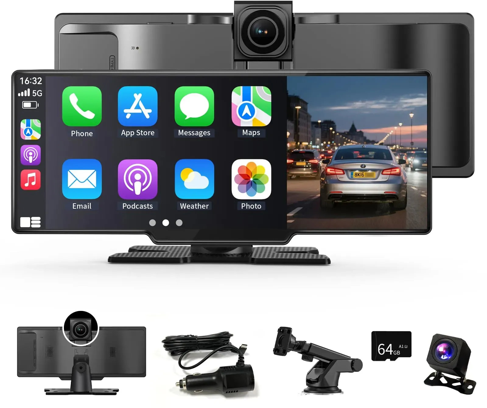 Kategorie: Car-Multimedia-Systeme - cozysoon - GTIN:0743623449589 - 7 Zoll Carplay Display: Dieser kabellose CarPlay-Bildschirm verfügt über eine Sonnenschutzfunktion. Es bietet eine klare Bildqualität bei hellem Sonnenlicht Android Auto Display Verfügt über eine Rückfahrkamera: Die 1080P HD-Rückfahrkamera erleichtert das Einparken. Beim Einlegen des Rückwärtsgangs werden auf dem 7-Zoll-Bildschirm automatisch Hilfslinien angezeigt, die eine klare Sicht nach hinten ermöglichen. Die Rückfahrkamera ist IP65-wasserdicht und erleichtert das Einparken auch bei Regen (Hinweis: Rückfahrkamera Hilft nur beim Rückwärtsfahren, zeichnet kein Video auf) A-pple CarPlay/Android Auto: Dieses Carplay-Display unterstützt kabelloses CarPlay/Android Auto. Durch die Verbindung Ihres Smartphones können Sie auf Smartphone-Apps, Karten, Musik, Videos und andere Funktionen auf dem a-pple carplay display(Notiz: Nicht kompatibel mit Xiao-mi, Hua-wei, Sam.sung Galaxy-Serie) Vier Audioausgabeoptionen:Car multimedia player Sie können zwischen verschiedenen Tonausgabemethoden wählen, sodass Sie während der Fahrt hochwertige Musik und Sprachinhalte genießen und so das gesamte Fahrerlebnis verbessern können Kompatibel mit den meisten Fahrzeugen: Das Car Play Display verfügt über eine verstellbare Saugnapfhalterung. Die Halterung lässt sich einfach an Ihrem Armaturenbrett oder Ihrer Windschutzscheibe befestigen. Geeignet für eine Vielzahl von Fahrzeugen, darunter LKWs, Busse, Wohnmobile, Traktoren, Autos ... Mit 49,90 Euro ist dieses Avizar Autoradio ein extrem günstiger Einstieg in die Welt von CarPlay und Android Auto, ideal für preisbewusste Käufer. ![]()