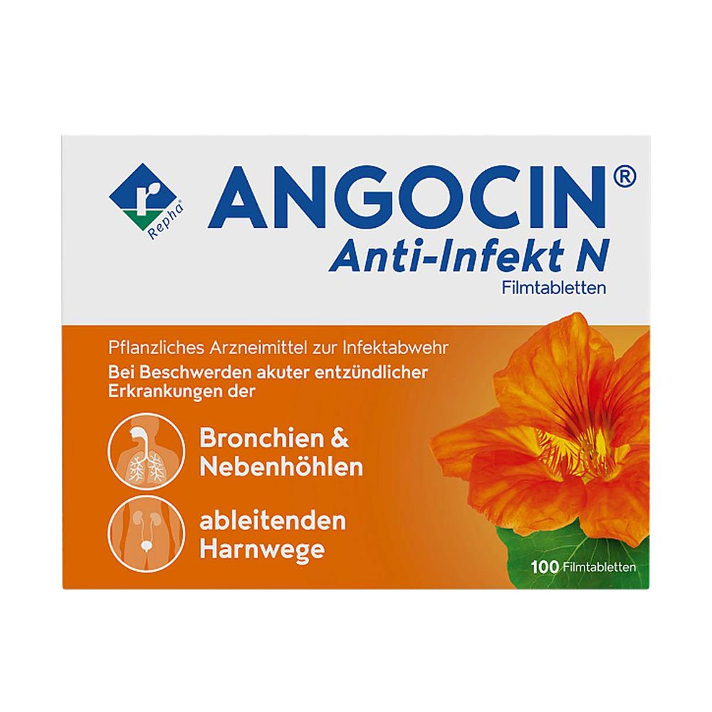 REPHA Biologische Arzneimittel - ANGOCIN Anti-Infekt N bei Atemwegs- & Blasenentzündung 100 stk - bei apolux.de - aus Yadore Produktdaten Fliegende-Pillen.de bietet Angocin Anti-Infekt N zu einem moderaten Preis an. ![]() ![]() Repha ANGOCIN Anti-Infekt N Filmtabletten 100 St.