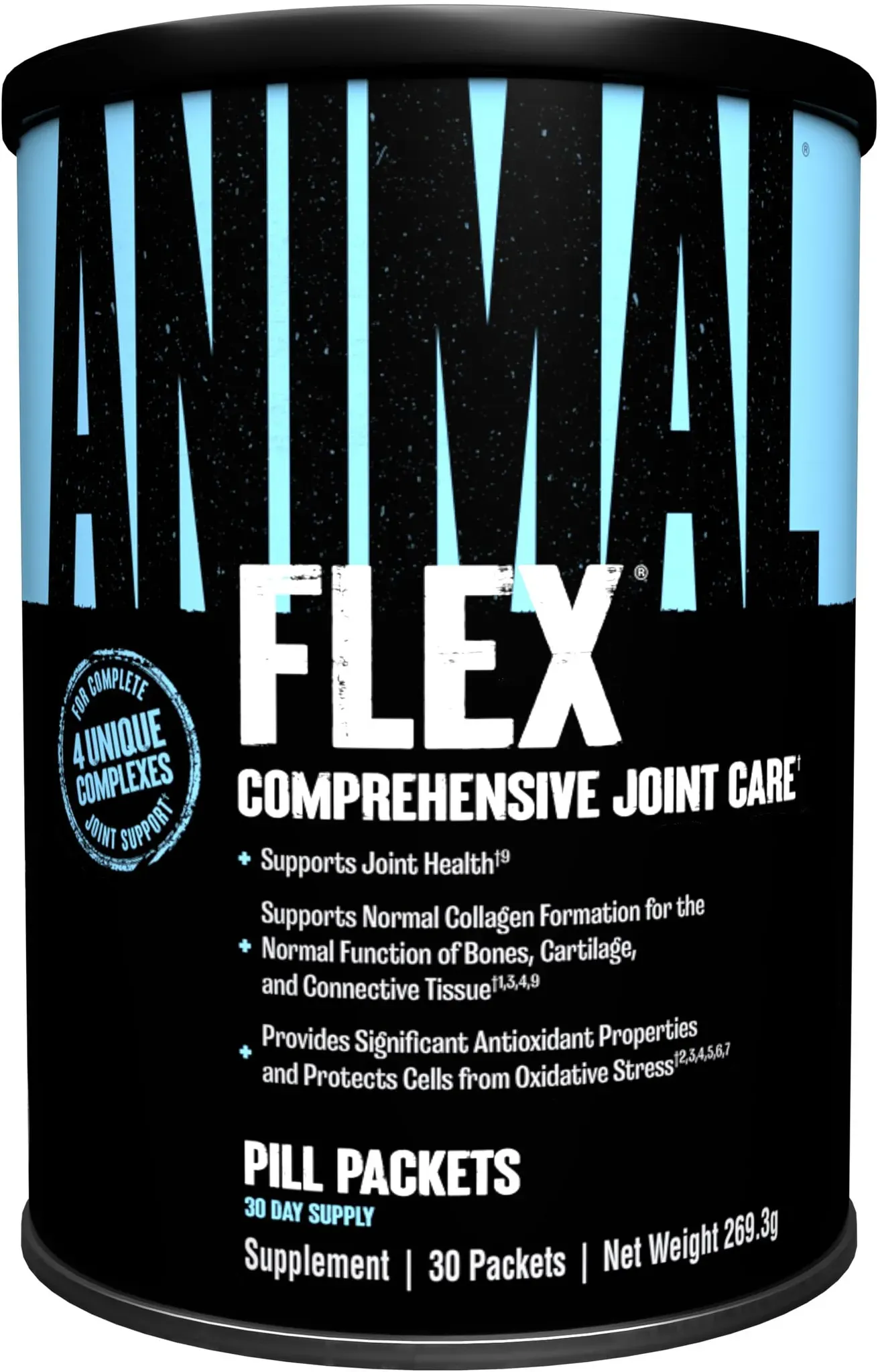 Zustand: Neu - 108,02 € / kg - Kombinationen Chondroitin & Glukosamine Kombinationen - Animal Universal Nutrition - U3281 - EAN: 0039442032812 - UNTERSTÜTZUNG FÜR GELENKE, KNOCHEN UND KNORPEL: Animal Flex liefert eine synergetische Kombination aus bewährten Inhaltsstoffen wie Glucosamin, Chondroitin, MSM, Kollagen, Hyaluronsäure, Kurkuma, Ingwer und Leinsamenöl. ZELL-SCHUTZ MIT VITAMINEN UND SPURENELEMENTEN: Die enthaltenen Vitamine C & E sowie Zink, Selen und Mangan tragen zum Schutz der Zellen vor oxidativem Stress bei - ein wichtiger Beitrag für aktive Sportler und gesundheitsbewusste Menschen. ENTWICKELT FÜR SPORTLER UND AKTIVE MENSCHEN: Egal ob im Kraftsport, Ausdauertraining oder Alltag - Animal Flex wurde speziell für hohe Belastungen entwickelt und unterstützt dich dabei, dein Bewegungspotenzial voll auszuschöpfen. WIE NUTZT DU ANIMAL FLEX: Im Gegensatz zu herkömmlichen Nahrungsergänzungsmitteln für Gelenke, musst du Animal Flex nur einmal täglich einnehmen. Nimm eine Packung tagsüber zu einer beliebigen Mahlzeit ein und schon bist du bereit fürs Training. ANIMAL - QUALITÄT SEIT 1983: Seit über 4 n entwickeln wir hochwertige Sportnahrung - von Sportlern für Sportler. Wenn du die gleiche Passion zum Kraftsport hast wie wir, bist du bei uns genau richtig. - 4 Händler im amazon.de Marketplace Dieses Angebot ist empfehlenswert, da es "Animal Flex" als umfassende Gelenkpflege in Packungen detailliert beschreibt und zu einem fairen Preis anbietet. ![]() ![]() ANIMAL Flex Comprehensive Joint Care - 4 einzigartige Komplexe für Gelenke, Knochen & Knorpel - mit Vitamin A & E, Glucosamin, Leinsamenöl & Hyaluronsäure - 30 Packungen