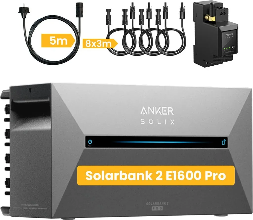 Zustand: Neu - Netzgebundene Systeme Netzgebundene Photovoltaikanlagen - Anker - A17C1 - EAN: 0194644055677 - JÄHRLICH 392€ STROMKOSTEN GESPART: 4 MPPT-Routen unterstützen 2400W, und du kannst Erweiterungsakkus bis zu 9,6kWh Kapazität hinzufügen. All diese Energieeinsparungen führen zu einer massiven Reduzierung deiner Stromrechnung um bis zu 392€. ANTI-ENERGIEVERSCHWENDUNG: Erreiche echte Effizienz mit dem Anker SOLIX Smarten Zähler, der den Stromverbrauch in Echtzeit überwacht, mit einer Reaktionszeit von nur 3 Sekunden. LANGLEBIGE LEISTUNG: Die Solarbank 2 Pro versorgt dein Zuhause 1 lang mit 6.000 Ladezyklen (1 Hersteller ). Solarpanels halten 3 (1 Hersteller ) und bleiben mit IP65 (IP68 für Panels) wasser- und staubdicht, auch bei -20°C Kälte. 1000W NOTSTROMVERSORGUNG: Halte wichtige Geräte mit der 1000W AC-Steckdose auch während eines Stromausfalls am Laufen. IM LIEFERUMFANG: Solarbank 2 E1600 Pro, 2× RS40T Solarpanel, 5m Schuko-Ladekabel, 8× 3m Solarpanel-Verlängerungskabel, Installationszubehör, Anleitungshandbuch. Sets aus Solarbank und Zubehör (Modul, Zähler, etc), werden in mehreren Lieferungen verschickt. Die Auslieferung erfolgt innerhalb des angegebenen Zeitraums. - Verkäufer: Anker SOLIX im amazon.de Marketplace Dieses Angebot ist eine gute Wahl für ein Balkonkraftwerk mit 1,6kWh Speicher und bietet ein solides Preis-Leistungs-Verhältnis. ![]() Manomano.d e