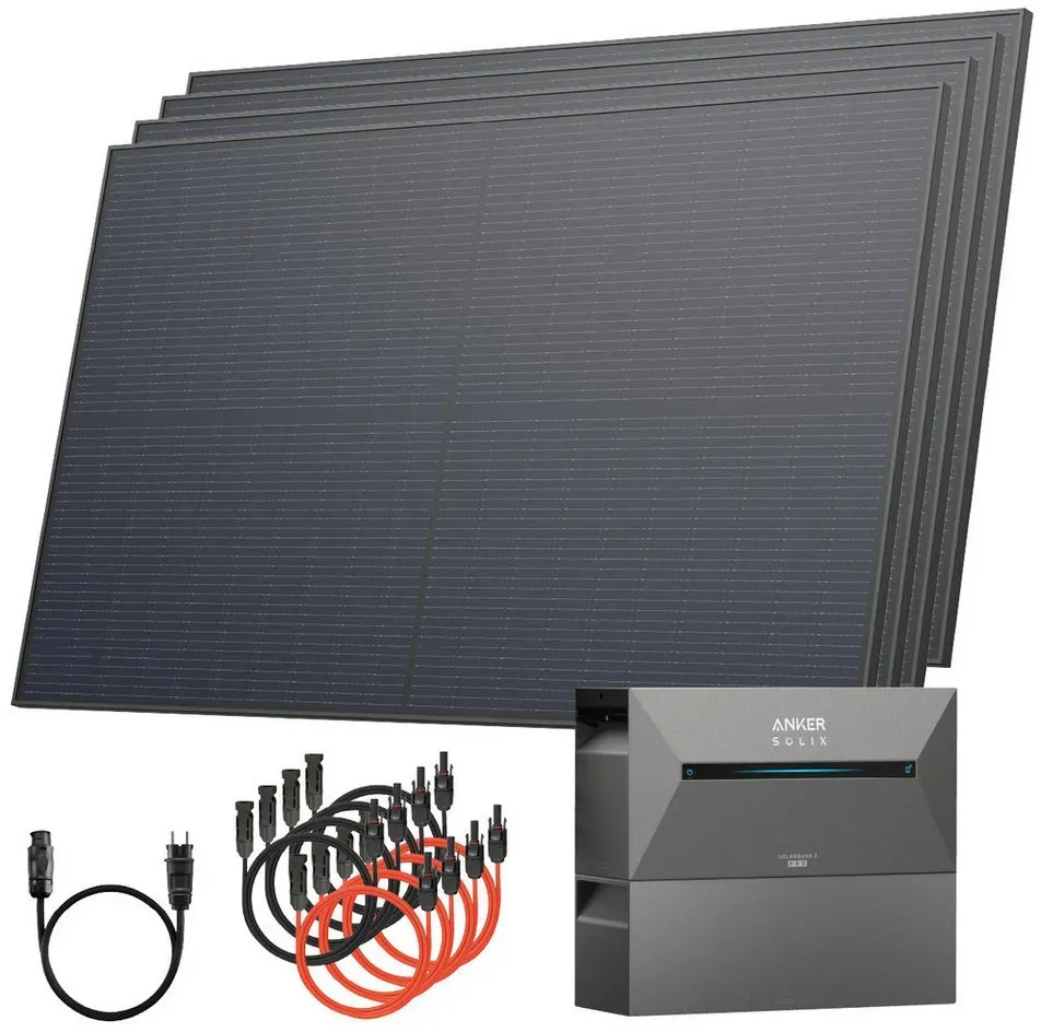 Kategorie: Solaranlagen - Anker - Revolutionäres Komplett-Set: Speicherlösung mit integriertem Wechselrichter und Steuerungseinheit Das Balkonkraftwerk mit Speicher bietet eine perfekte Lösung für effiziente Energienutzung zu Hause. Mit einer Speicherkapazität von 1,6 kWh, die flexibel auf bis zu 9,6 kWh erweiterbar ist, kann es 6000 Ladezyklen bewältigen und kommt mit einer 10-Jahres- . Dieses System überzeugt durch einfache Handhabung in nur 10 Minuten aufgebaut, ohne komplizierte Verkabelung oder unnötigen Schnickschnack, jetzt sogar mit 0% Mehrwertsteuer. Das Set umfasst vier bifaziale Hochleistungs-Solarmodule mit je 435 Watt. Diese Module können nicht nur auf der Vorderseite Strom erzeugen, sondern nutzen durch ihre bifaziale Bauweise auch die Rückseite, um bis zu 30% zusätzliche Energie durch Reflektion zu gewinnen. Insgesamt ergibt sich eine Leistung von 1740W, ideal um den Energieverbrauch des Haushalts effektiv abzudecken. Egal ob Kühlschrank, Router oder andere stromhungrige Geräte im Standby mit diesem System nutzen Sie die erzeugte Energie zu 100%. Das Herzstück des Sets, die Anker Solarbank 2 PRO, ist ein Speicher mit integriertem Wechselrichter. Dadurch können die Solarmodule direkt am Speicher angeschlossen werden, was eine einfache und schnelle Installation ermöglicht. Die Steuerung per App erlaubt eine flexible Regelung, wann und wie viel Energie aus den Modulen ins Hausnetz eingespeist oder gespeichert wird. Abends können Sie festlegen, wie viel Strom ... Ein Komplettset mit der Solarbank 2 E1600 Pro, smartem Zähler und vier Solarpaneelen, ideal für eine umfassende Solarlösung. ![]() ![]() Anker SOLIX Solarbank 2 E1600 Pro + Smarter Zähler + 4 x 440Wp Solarpaneele
