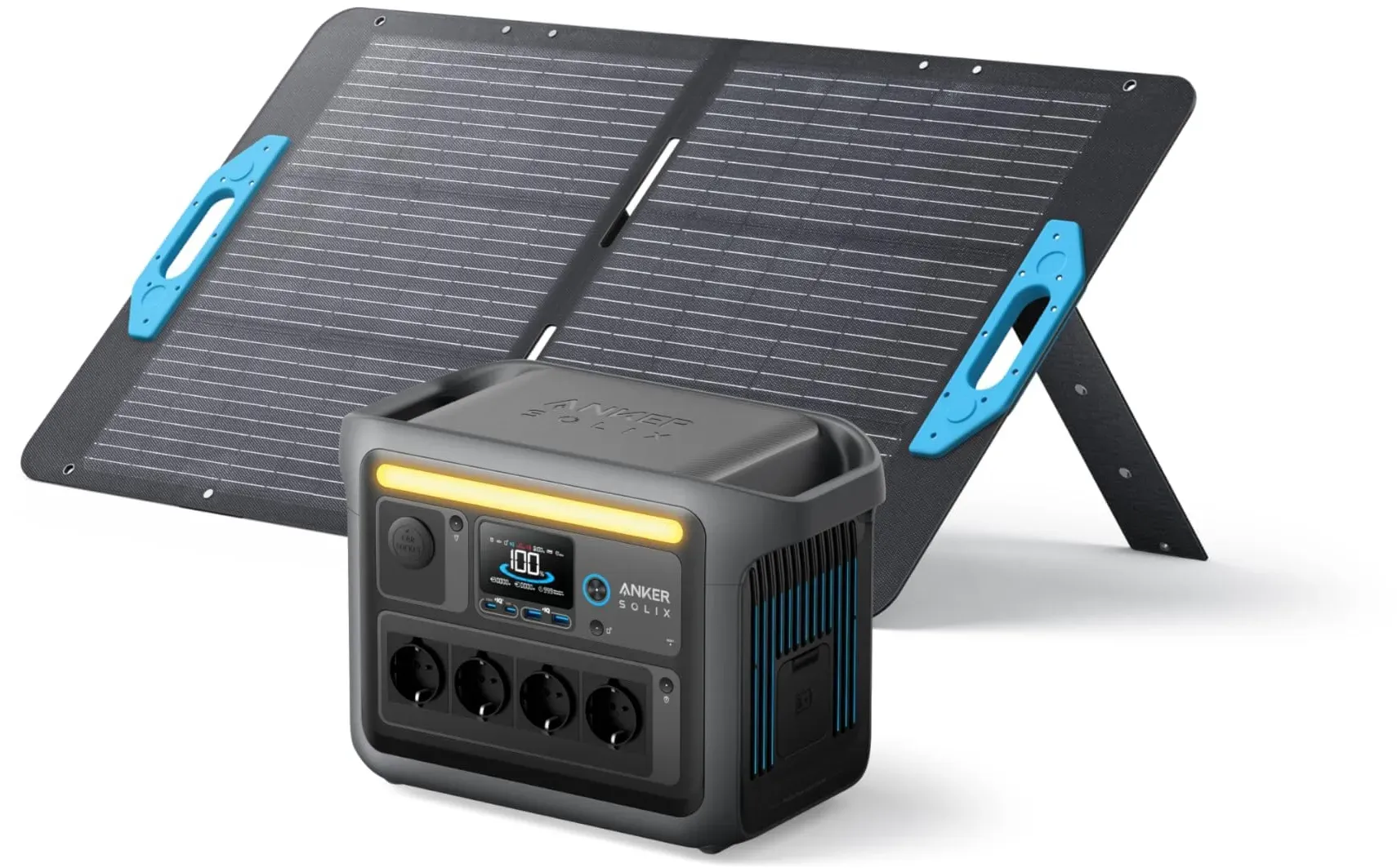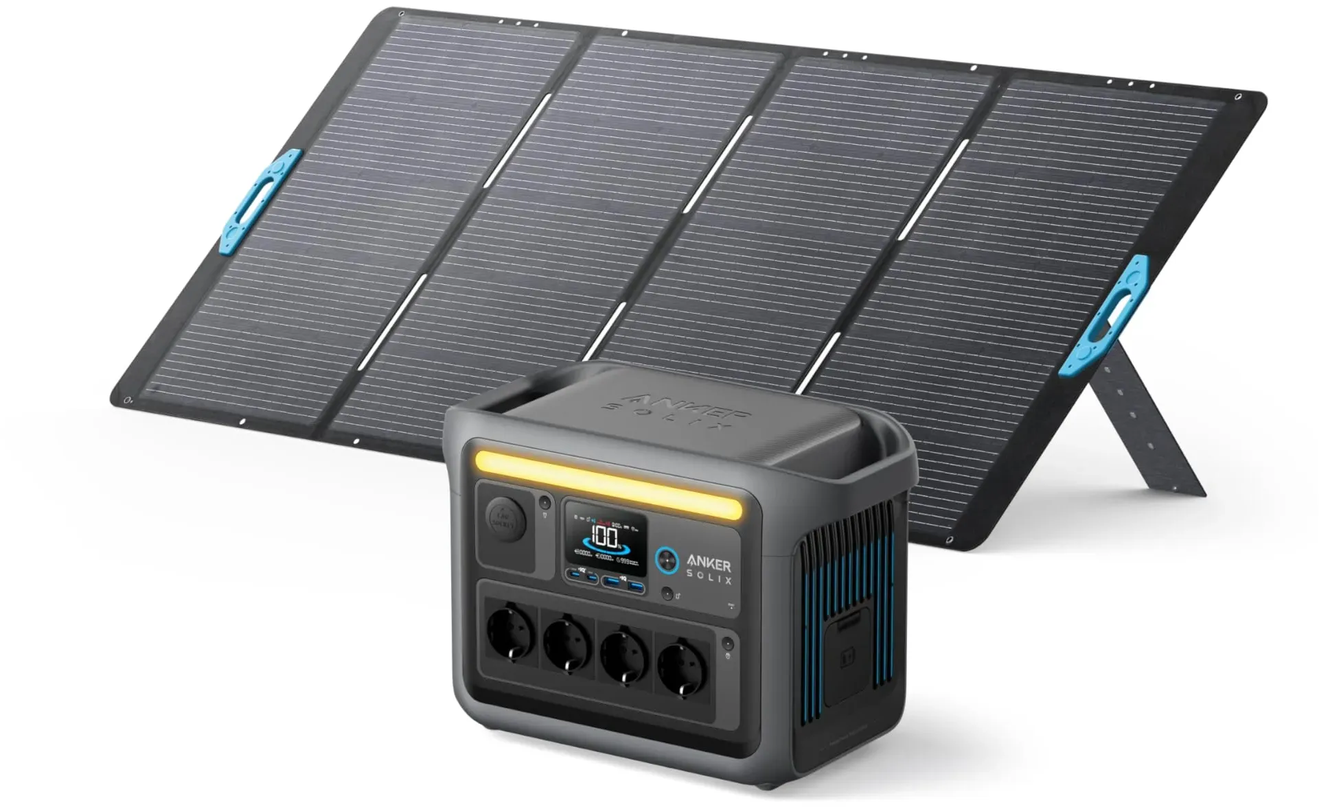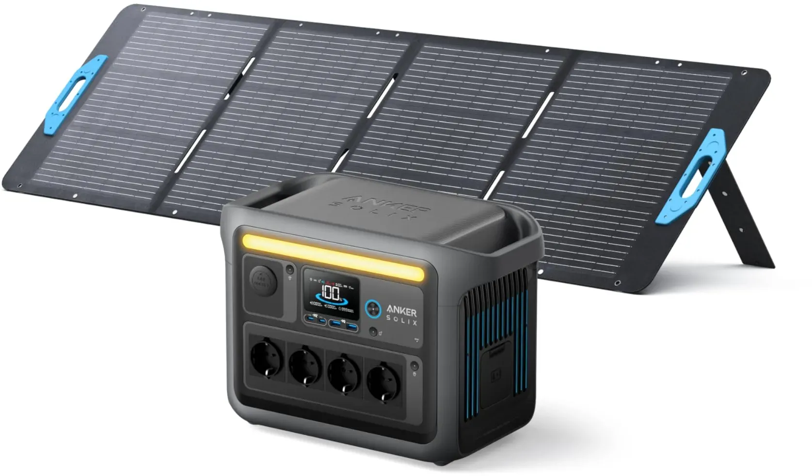 Gewöhnlich versandfertig in 2 bis 3 TagenAnker SOLIX C1000 Set Tragbare Powerstation mit 400W Solarpanel, 1800W Solargenerator, 4230V Steckdosen mit max. 2400W Leistung, LFP Powerstation für Outdoor, Camping und Stromreserve