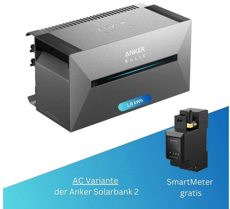 lieferbar-in 3-4 Werktagen bei dirAnker Balkonkraftwerk SPEICHER Anker SOLIX Solarbank 2 AC gratis Smart-Meter Versand 0 , 800 W, mit Anker Solix Smart-Meter gratis, (2-St., AC Variante der Anker Solix Solarbank 2 1,6 kWh steckerfertig), Bis zu 920 Ersparnis im Jahr, 100% Eigenverbrauch (Nulleinspeisung) grau
