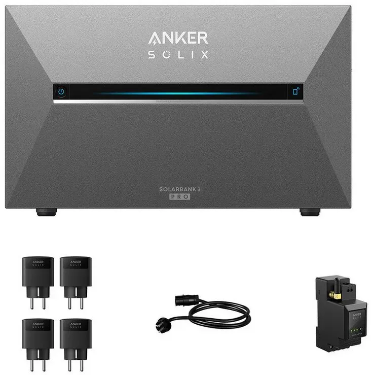 lieferbar-in 6-8 Werktagen bei dirAnker Balkonkraftwerk Anker SOLIX Solarbank 3 E2700 Pro mit Zusatzsakkus und Smart Plug, (Smart Meter und 4x Anker Smart Plug im Lieferumfang enthalten), Speicher mit integriertem Wechselrichter, All-in-One 2,668kWh Akku