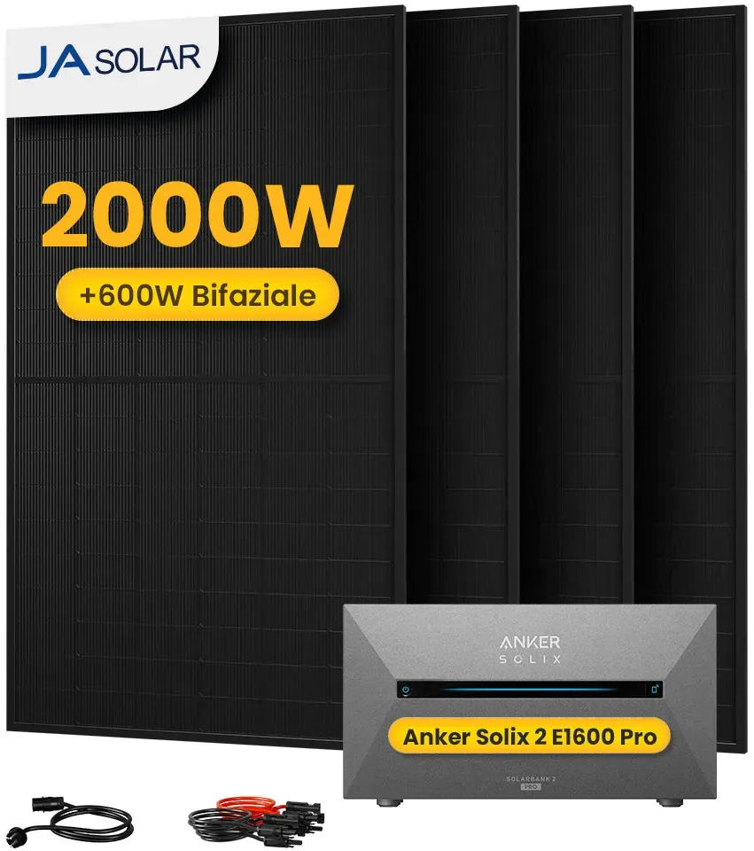 Zustand: Neu - Netzgebundene Systeme Netzgebundene Photovoltaikanlagen - Anker - A17C1 - EAN: 0194644055677 - JÄHRLICH 392€ STROMKOSTEN GESPART: 4 MPPT-Routen unterstützen 2400W, und du kannst Erweiterungsakkus bis zu 9,6kWh Kapazität hinzufügen. All diese Energieeinsparungen führen zu einer massiven Reduzierung deiner Stromrechnung um bis zu 392€. ANTI-ENERGIEVERSCHWENDUNG: Erreiche echte Effizienz mit dem Anker SOLIX Smarten Zähler, der den Stromverbrauch in Echtzeit überwacht, mit einer Reaktionszeit von nur 3 Sekunden. LANGLEBIGE LEISTUNG: Die Solarbank 2 Pro versorgt dein Zuhause 1 lang mit 6.000 Ladezyklen (1 Hersteller ). Solarpanels halten 3 (1 Hersteller ) und bleiben mit IP65 (IP68 für Panels) wasser- und staubdicht, auch bei -20°C Kälte. 1000W NOTSTROMVERSORGUNG: Halte wichtige Geräte mit der 1000W AC-Steckdose auch während eines Stromausfalls am Laufen. IM LIEFERUMFANG: Solarbank 2 E1600 Pro, 2× RS40T Solarpanel, 5m Schuko-Ladekabel, 8× 3m Solarpanel-Verlängerungskabel, Installationszubehör, Anleitungshandbuch. Sets aus Solarbank und Zubehör (Modul, Zähler, etc), werden in mehreren Lieferungen verschickt. Die Auslieferung erfolgt innerhalb des angegebenen Zeitraums. - Verkäufer: Anker SOLIX im amazon.de Marketplace Ein empfehlenswertes Bundle mit der Solarbank und einem kostenlosen Smart Meter, das eine intelligente Energieverwaltung fördert. ![]() Anker SOLIX Solarbank 2 E1600 Pro - Balkonkraftwerk Batterie + Gratis Smart Meter - Schwarz