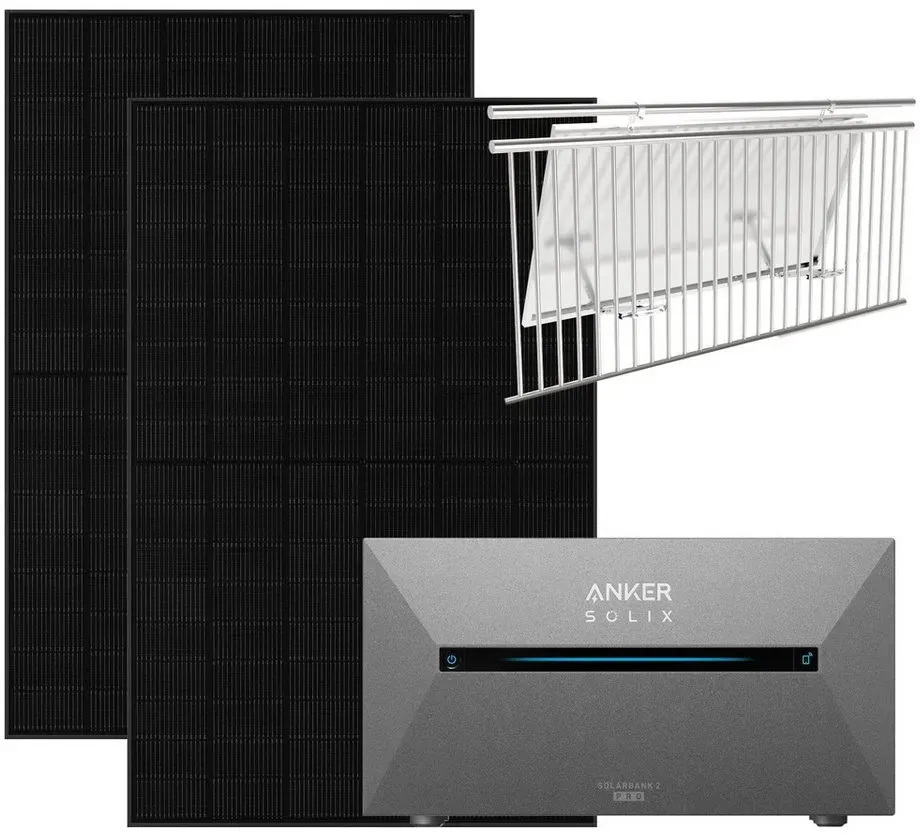 lieferbar-in 4-5 Werktagen bei dirAnker Balkonkraftwerk Anker Solix 890W Balkonkraftwerke mit Solarbank 2 Pro, (Set, 2 Solarmodule mit Anker solarbank 2 Pro Ohne Halterung/mit Halterung), Wifi, Bluetooth, IP65 schwarz